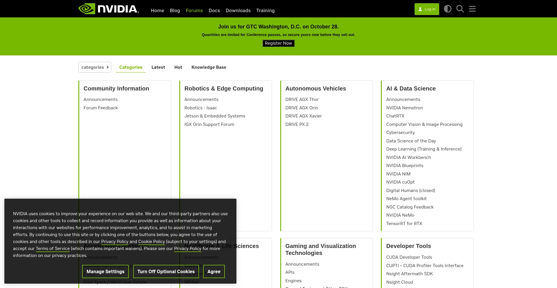 El sitio web implementa mecanismos de consentimiento de cookies en cumplimiento con regulaciones de privacidad como GDPR o CCPA. Esto demuestra que forums.developer.nvidia.com adhiere a estándares de protección de datos y proporciona a los usuarios control sobre prácticas de recolección de datos personales.
