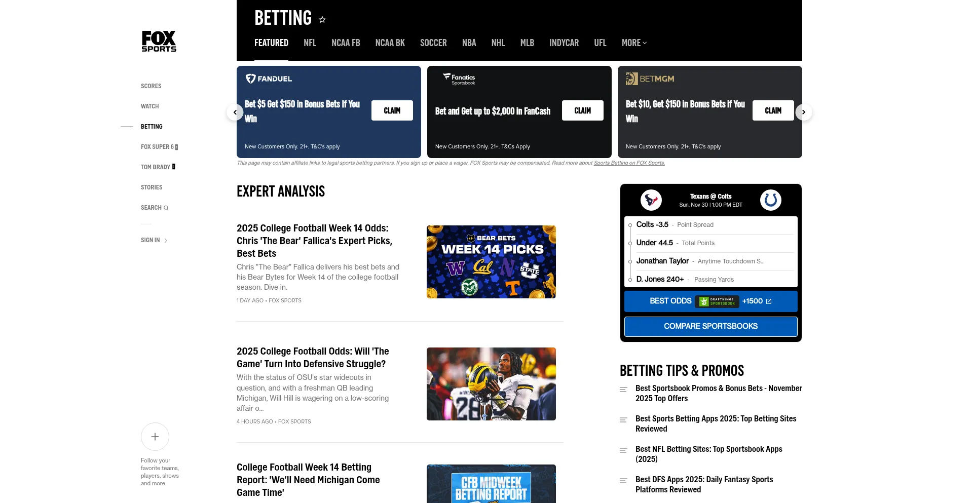Today's Featured Sports Betting Odds, Picks, Predictions | FOX Sports