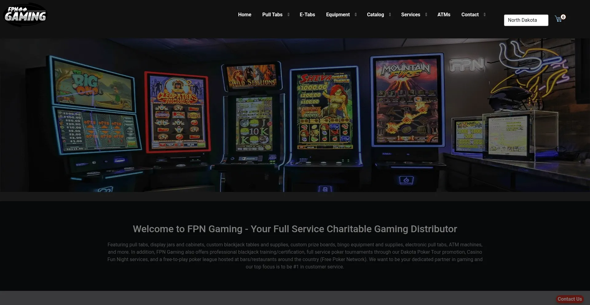 Full service gaming equipment and supplies, custom pull tab games, jar tickets, hard card dispensing devices, jars and displays, electronic pull tabs, blackjack tables, blackjac...