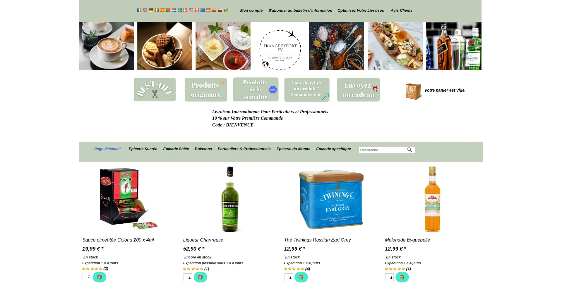 Épicerie Française, Produits français et étrangers, Vins, Champagnes, Chocolats, Épices, Huiles, Vinaigres, Livraison Internationale.....