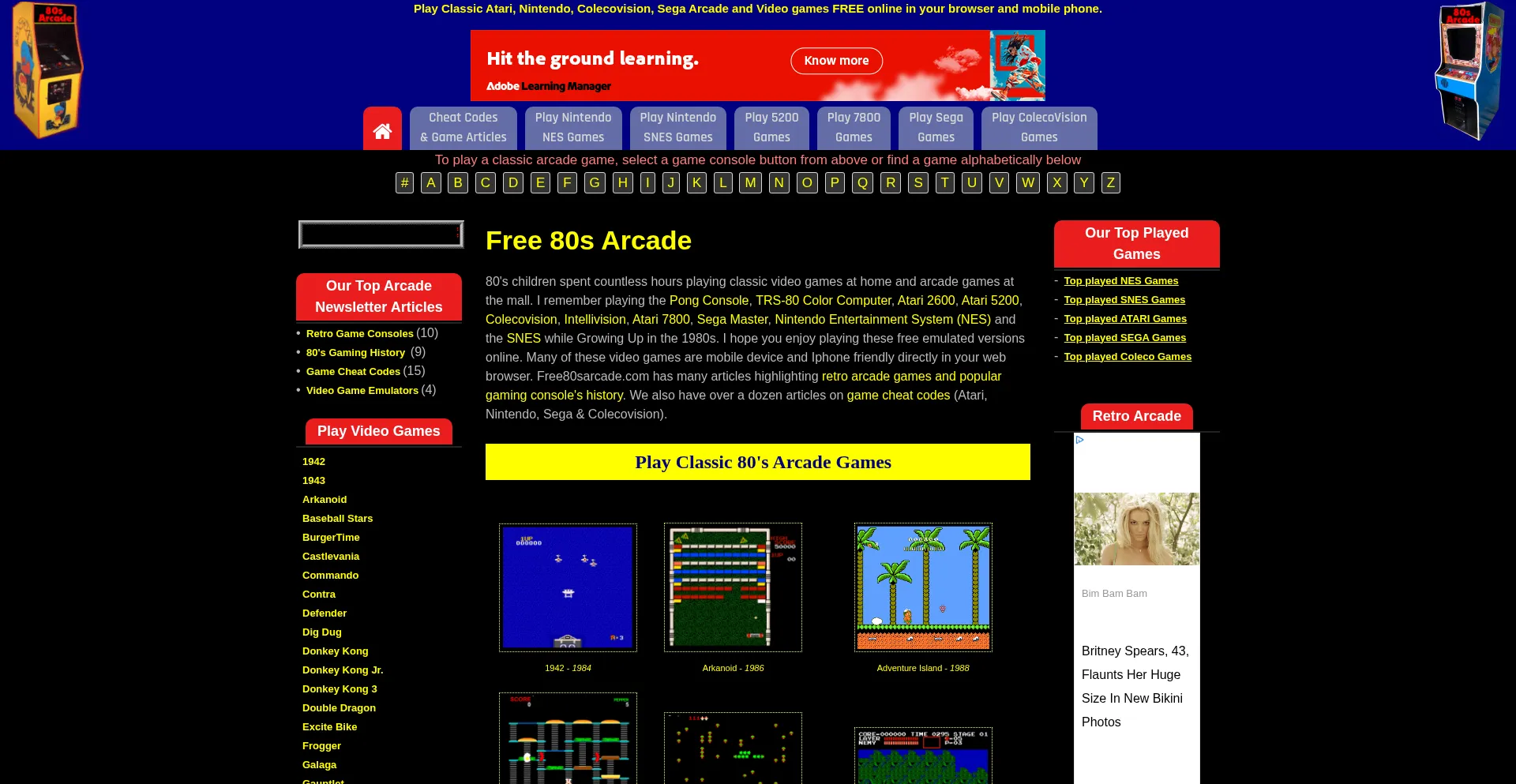 Free 80s Arcade - Online browser play of classic Nintendo NES, retro Atari games and original Sega Arcade games - Free play