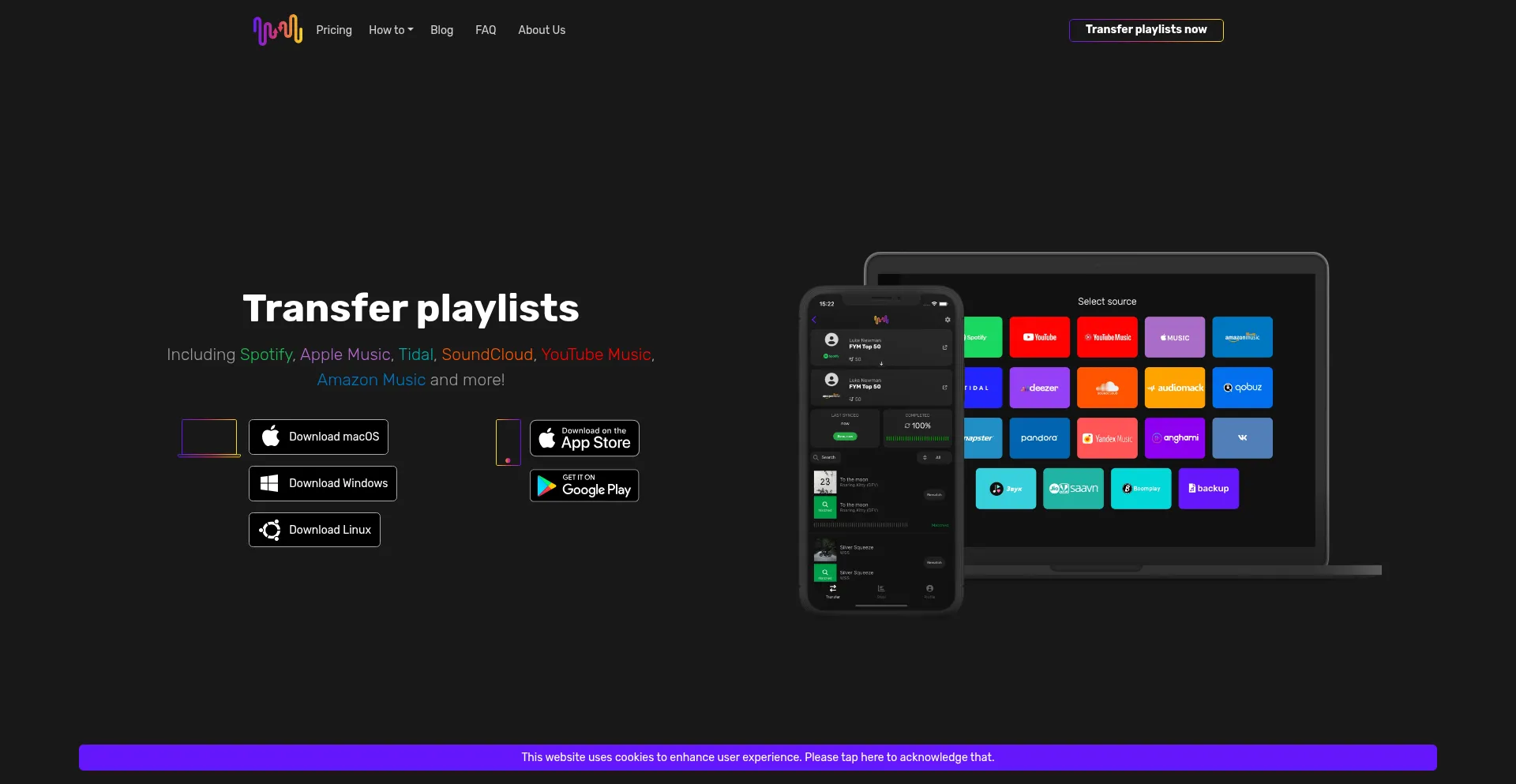 Transfer playlists between any music platform, including Spotify, Apple Music, Deezer, Qobuz, YouTube, and TIDAL. Seamlessly move your entire music library with just a few click...