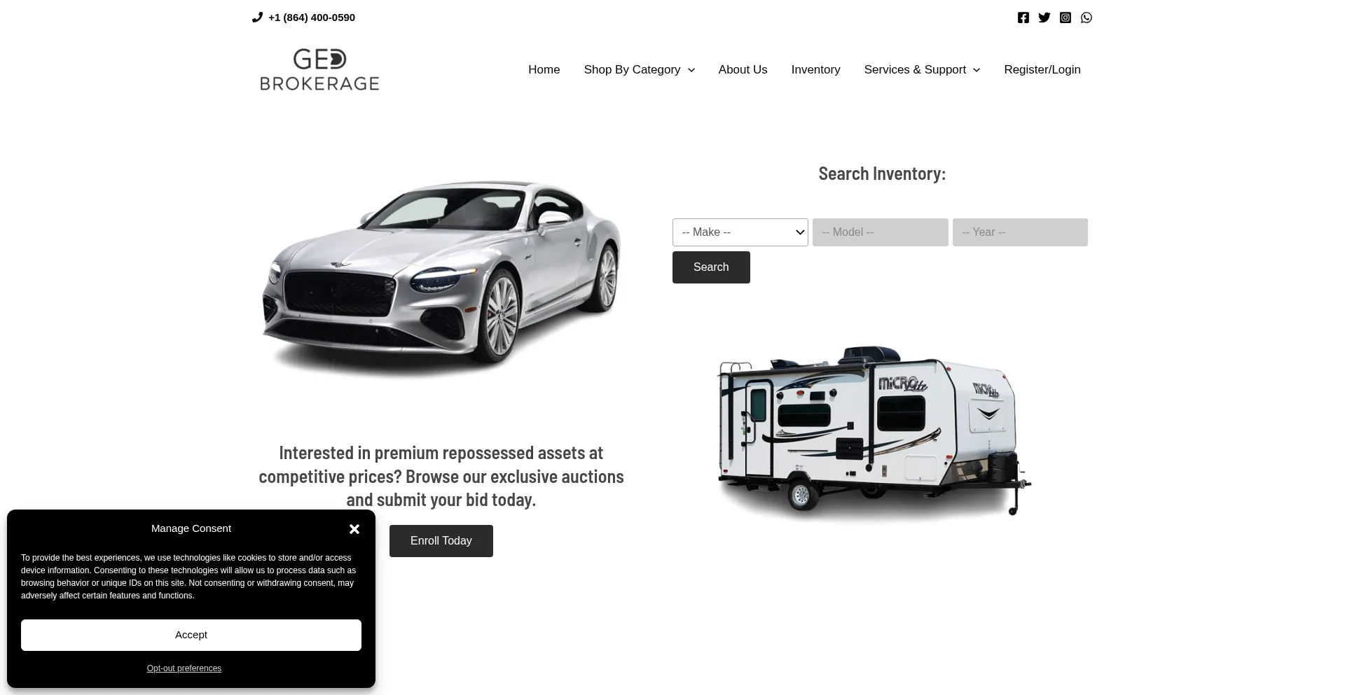 El sitio web implementa mecanismos de consentimiento de cookies en cumplimiento con regulaciones de privacidad como GDPR o CCPA. Esto demuestra que gedbrokerage.com adhiere a estándares de protección de datos y proporciona a los usuarios control sobre prácticas de recolección de datos personales.