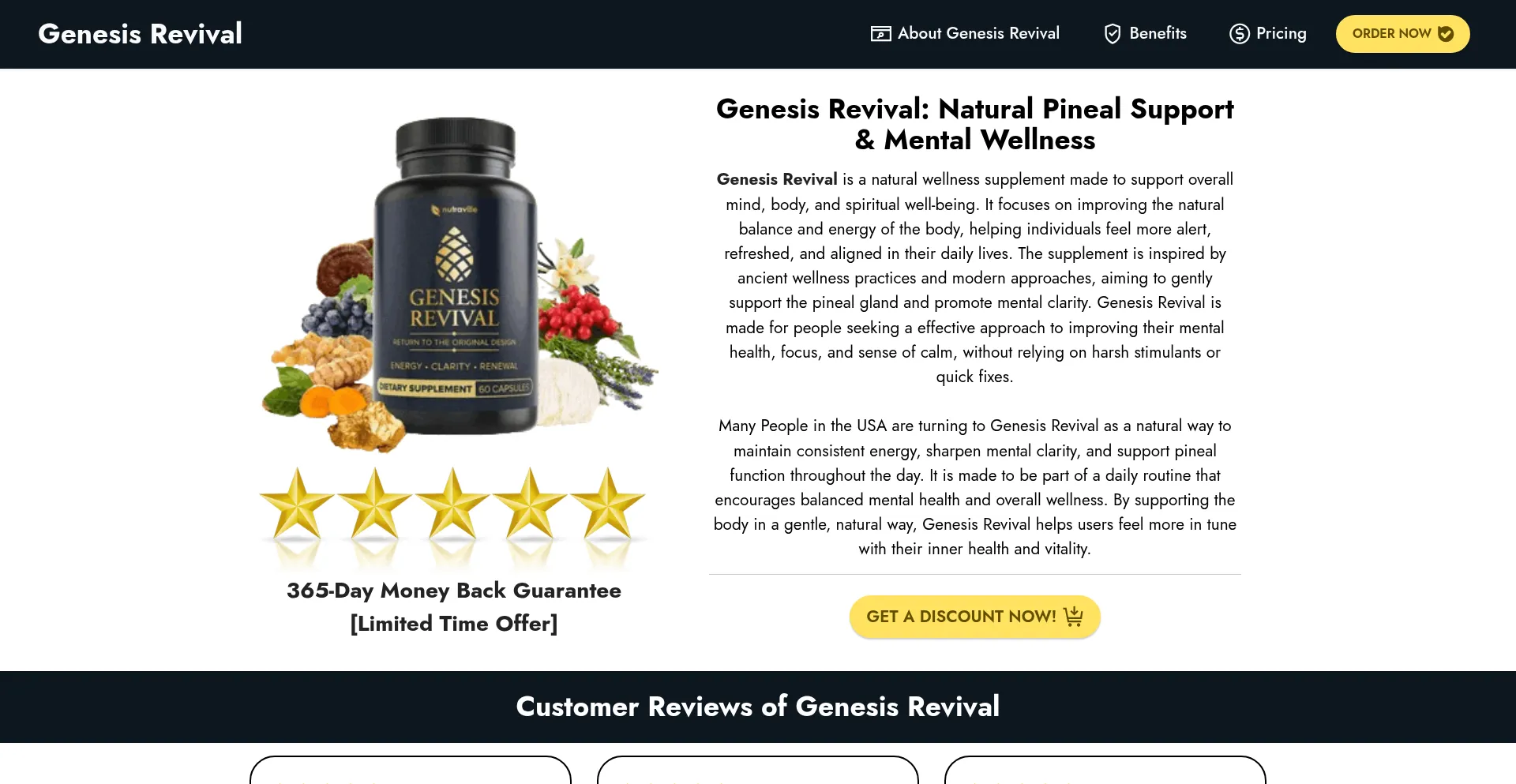 Genesis Revival is a natural supplement that sharpens mental clarity, lifts mood, boosts energy, supports pineal gland health, deep sleep, and full-body health.