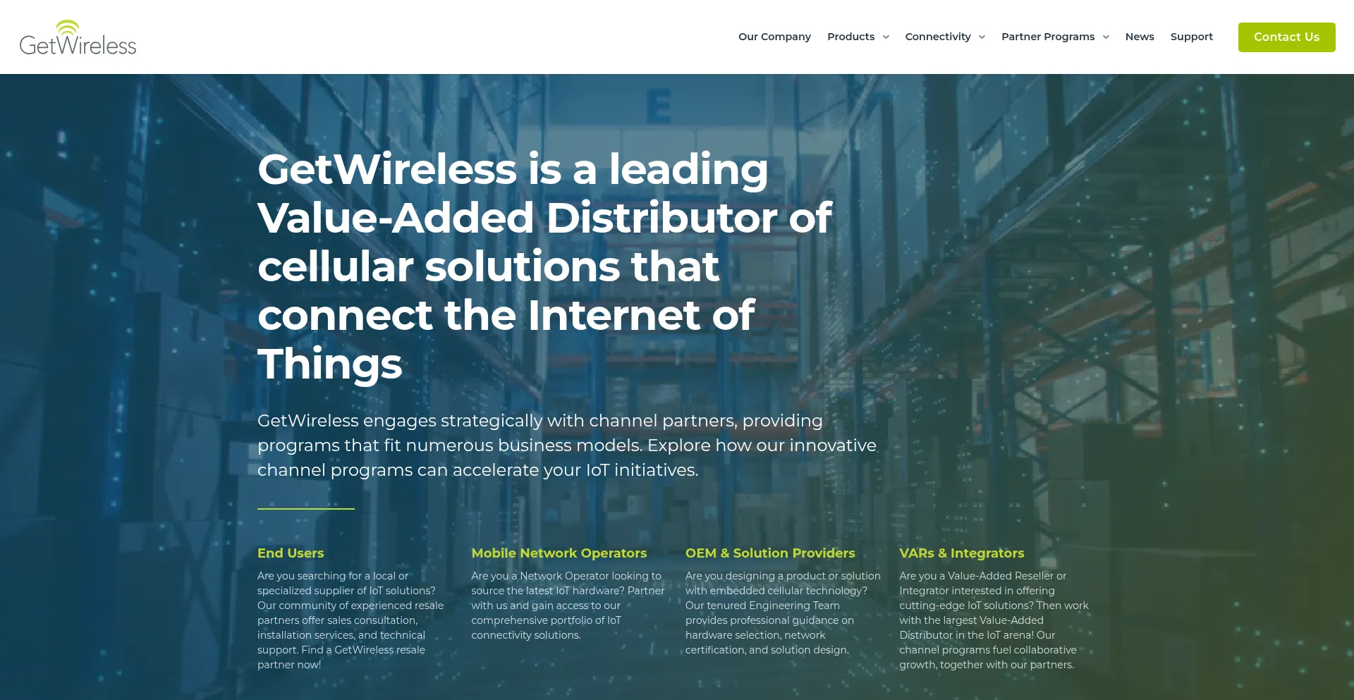 GetWireless is a leading Value-Added Distributor of cellular solutions that connect the Internet of Things. Learn about our Partner Programs.
