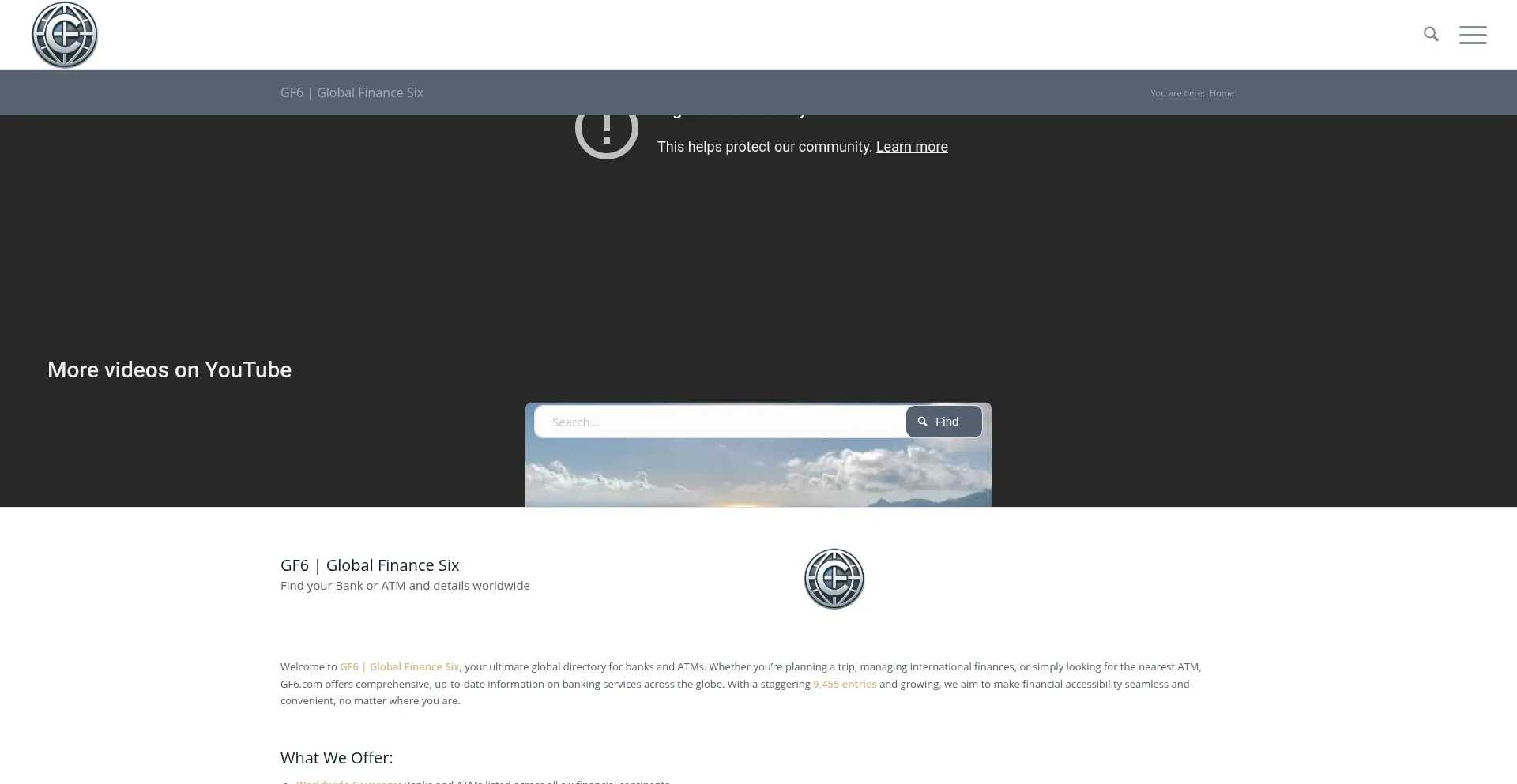 GF6 | Global Finance Six your global directory for banks and ATMs. Managing international finances, or simply looking for the nearest Bank or ATM