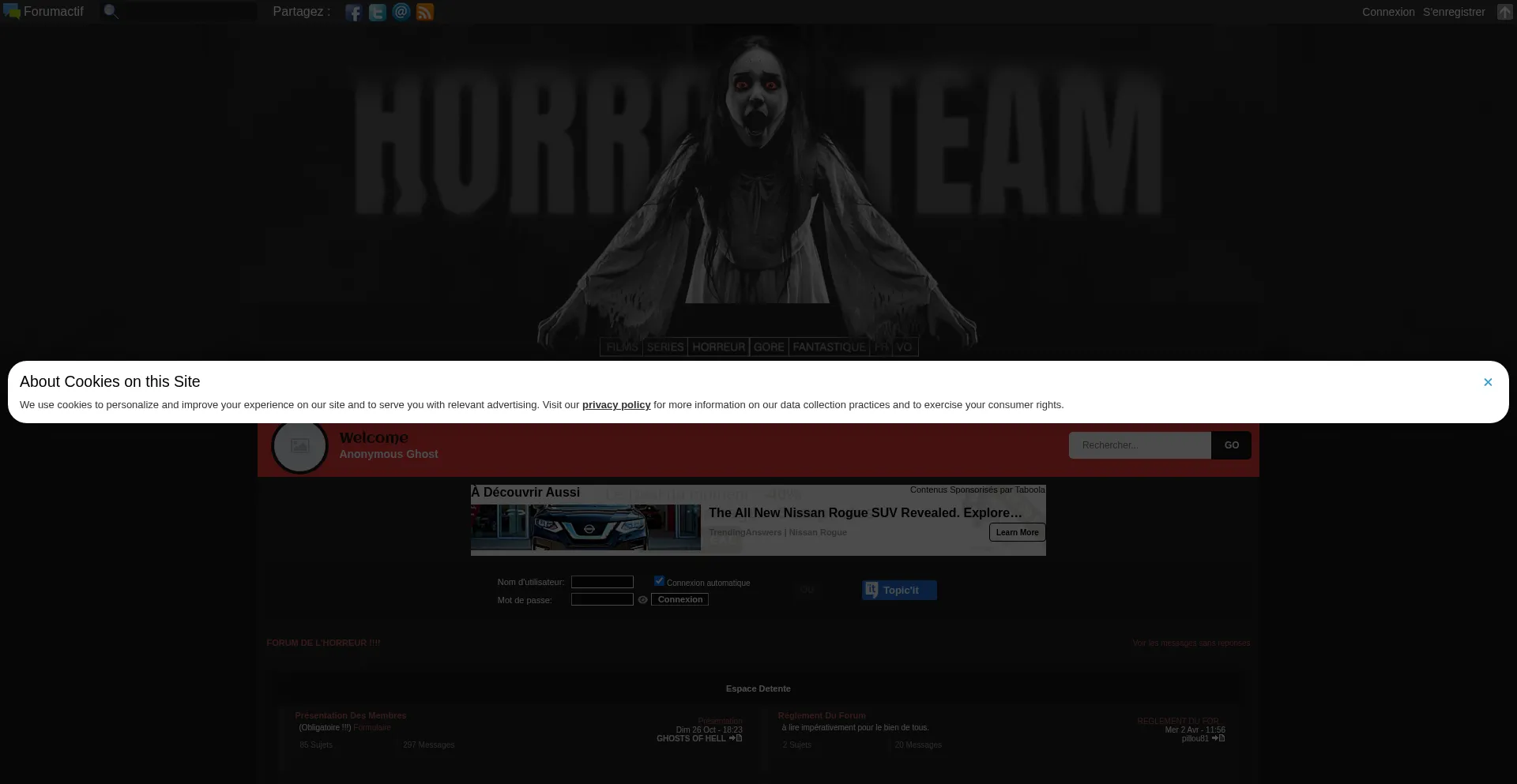 El sitio web implementa mecanismos de consentimiento de cookies en cumplimiento con regulaciones de privacidad como GDPR o CCPA. Esto demuestra que ghostsofhell.forumactif.com adhiere a estándares de protección de datos y proporciona a los usuarios control sobre prácticas de recolección de datos personales.
