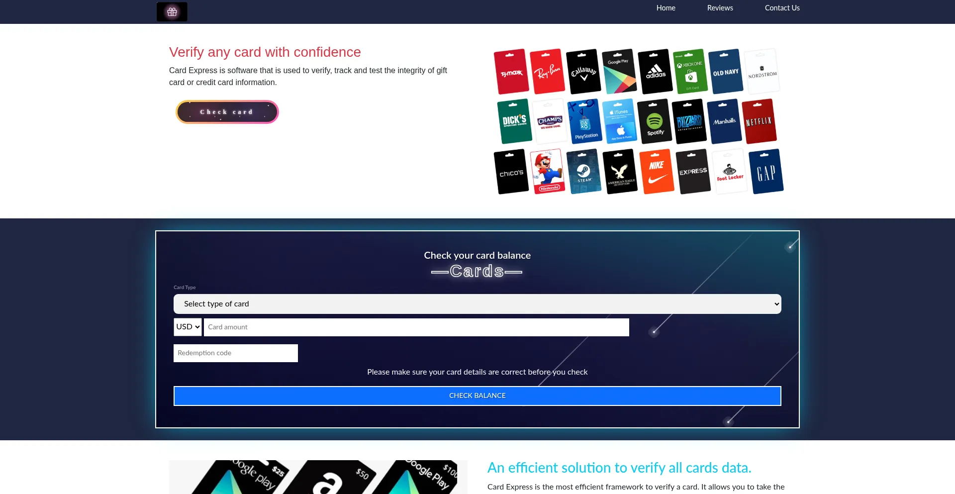 Card Express is software that is used to verify, track and test the integrity of gift card or credit card information.