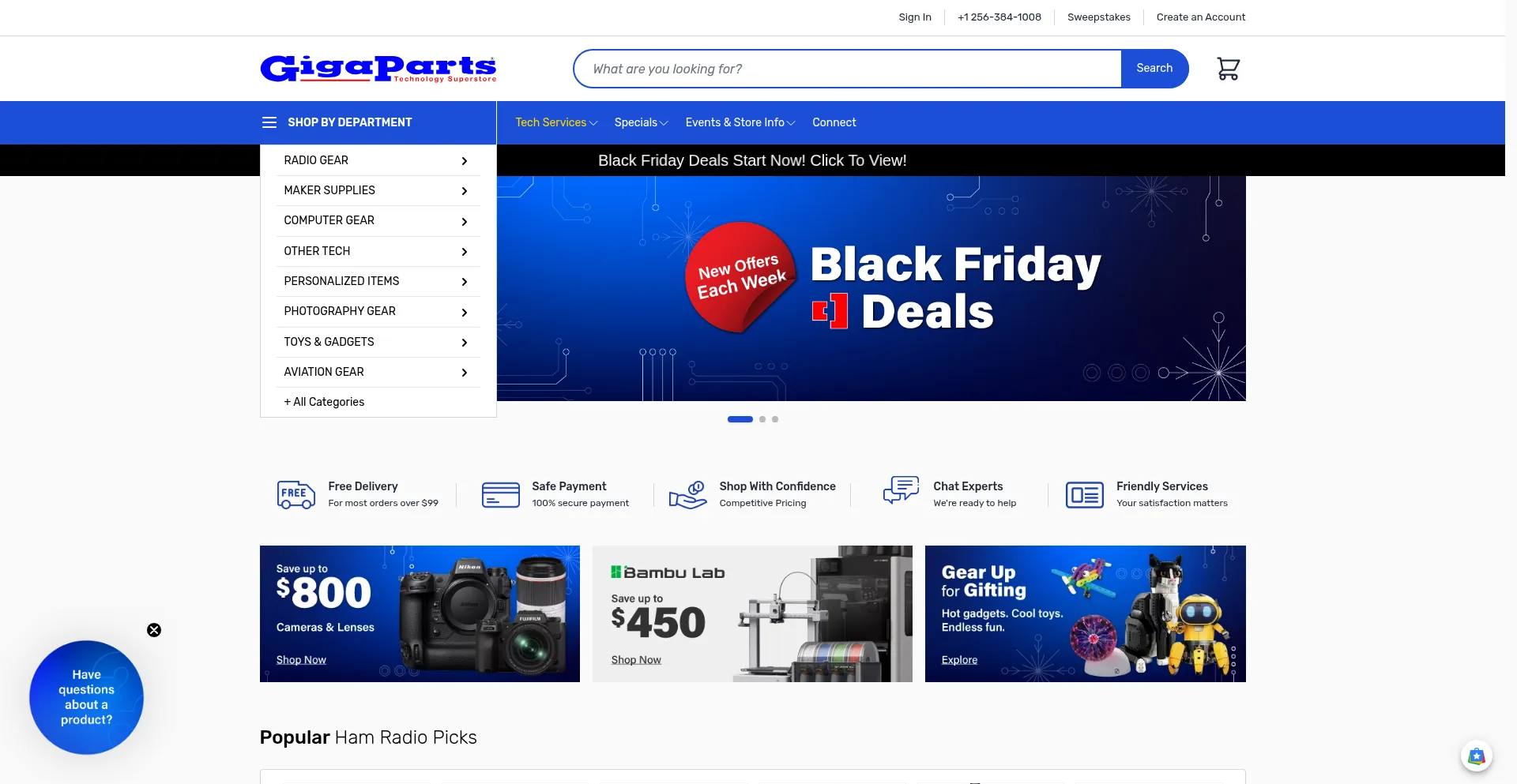 Explore tech and hobbies at GigaParts in Huntsville, AL! Shop for amateur radio, computers, photography, astronomy, and more in our huge superstore!