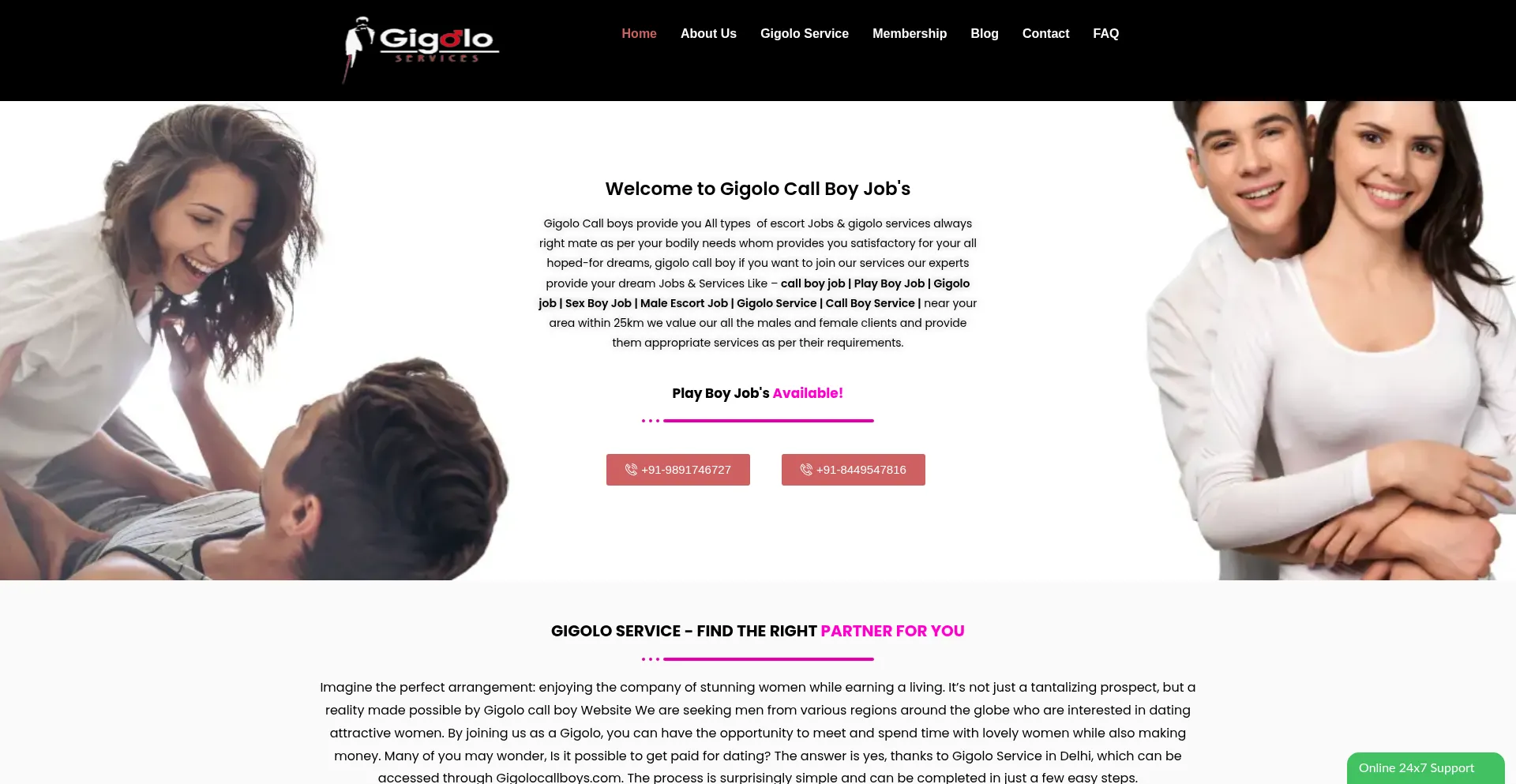 This is the Best gigolo service, play boy job, call boy job, and women dating website in India Get Apply here for online Gigolo Jobs.