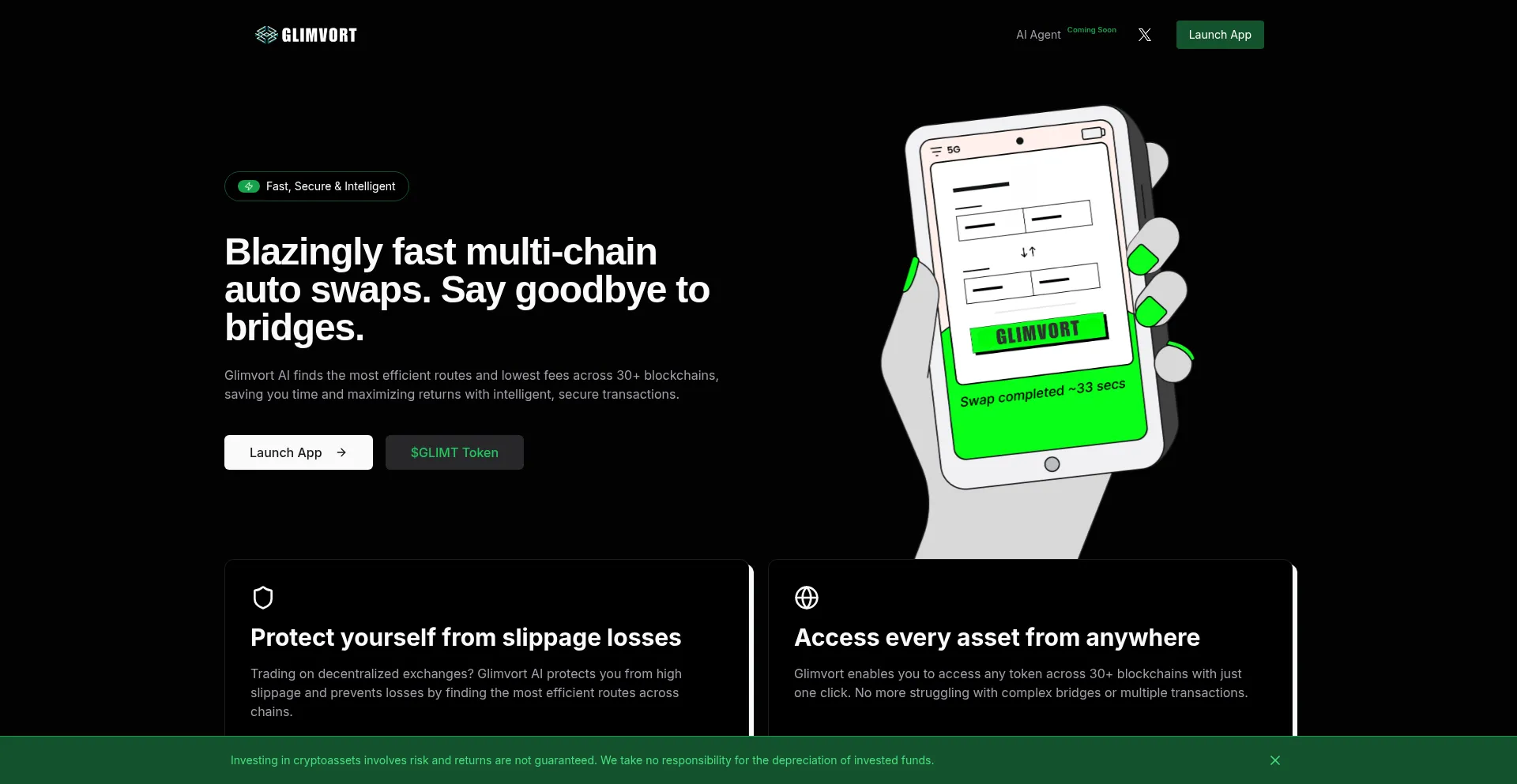 Glimvort AI finds the most efficient routes and lowest fees across 30+ blockchains, saving you time and maximizing returns with intelligent, secure transactions.