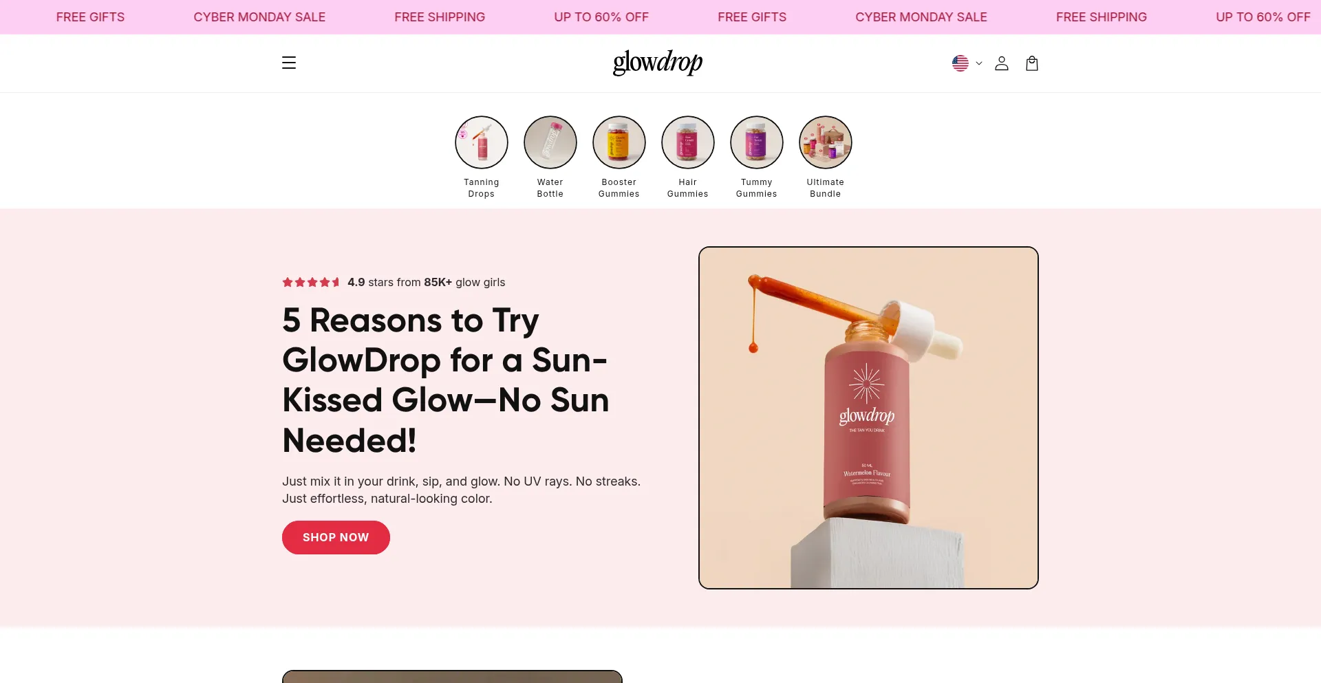 GlowDrop packs 10+ clinically-proven ingredients that build a natural glow, reduce bloating, clear your skin, and hydrate from within. It's a total transformation in one powerfu...