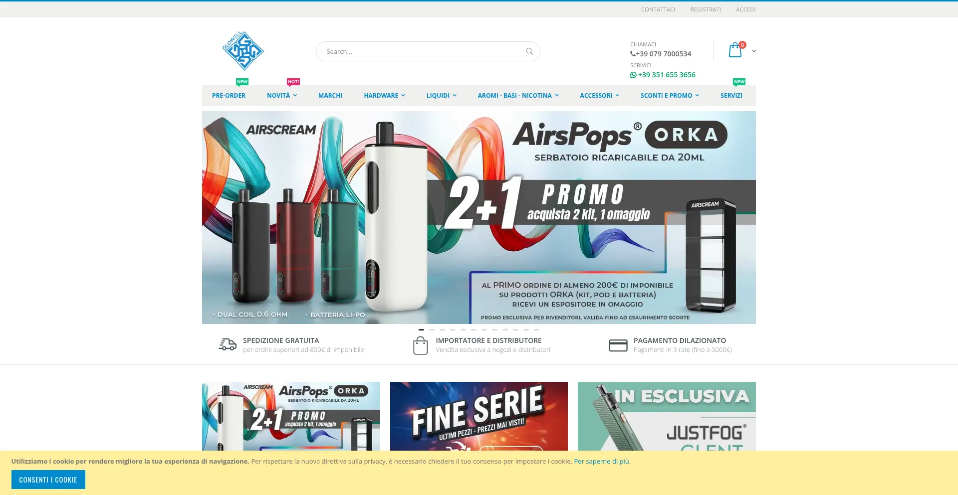 Glowell, il tuo ingrosso di fiducia per sigarette elettroniche, atomizzatori e liquidi. Ampia selezione di prodotti di alta qualità a prezzi competitivi. Spedizione rapida e as...