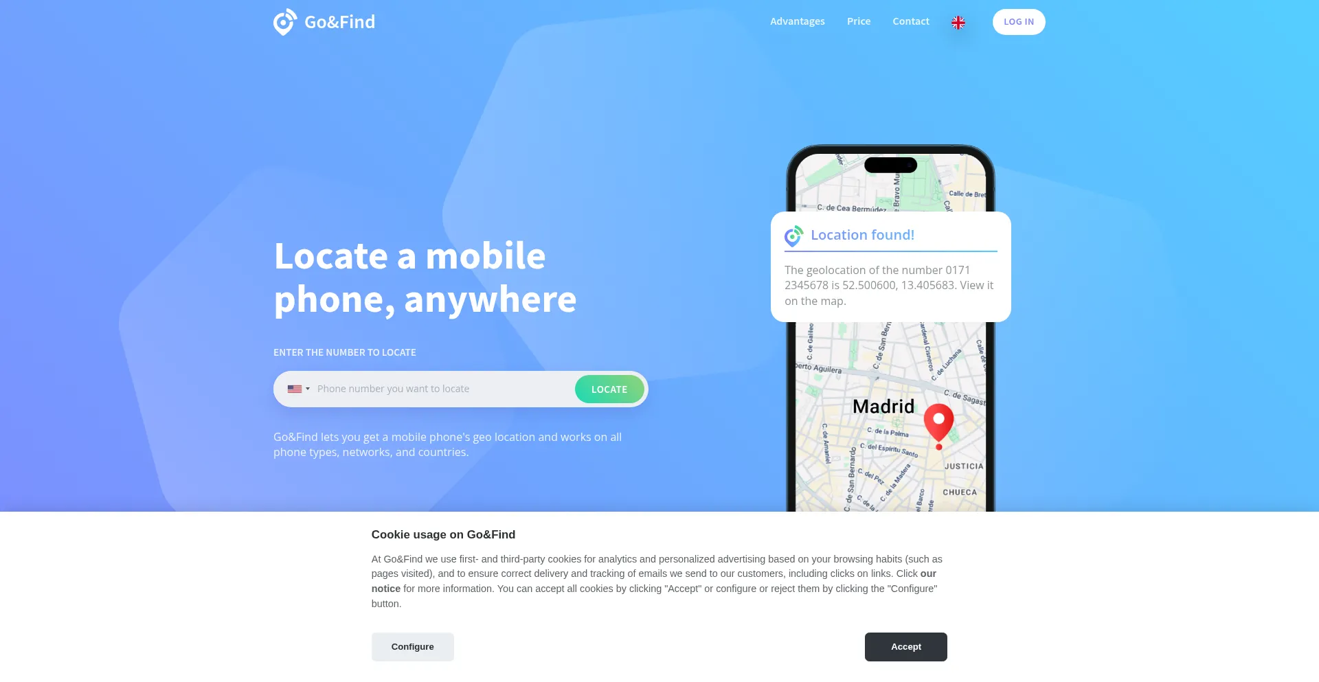 Locate a mobile phone, anywhere