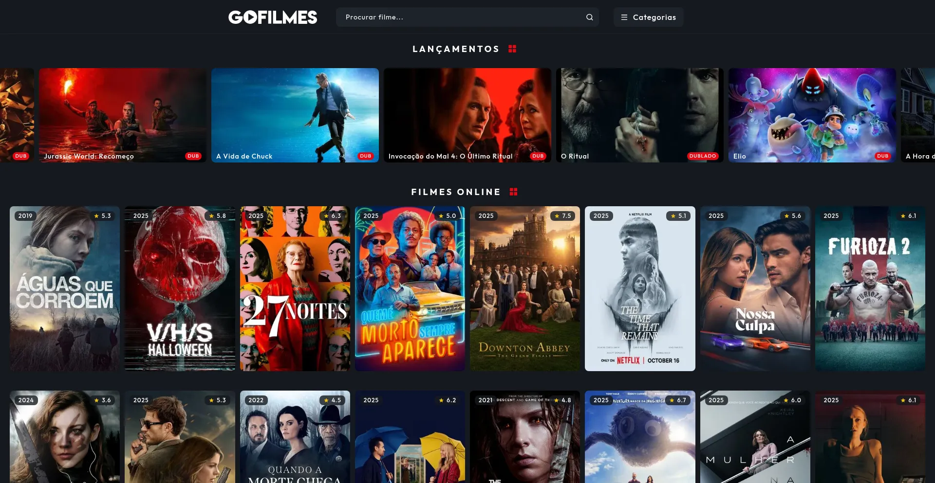 Assista filmes e séries online no GoFilmes. Lançamentos, clássicos e novidades em HD, dublados e legendados. Streaming rápido e gratuito!