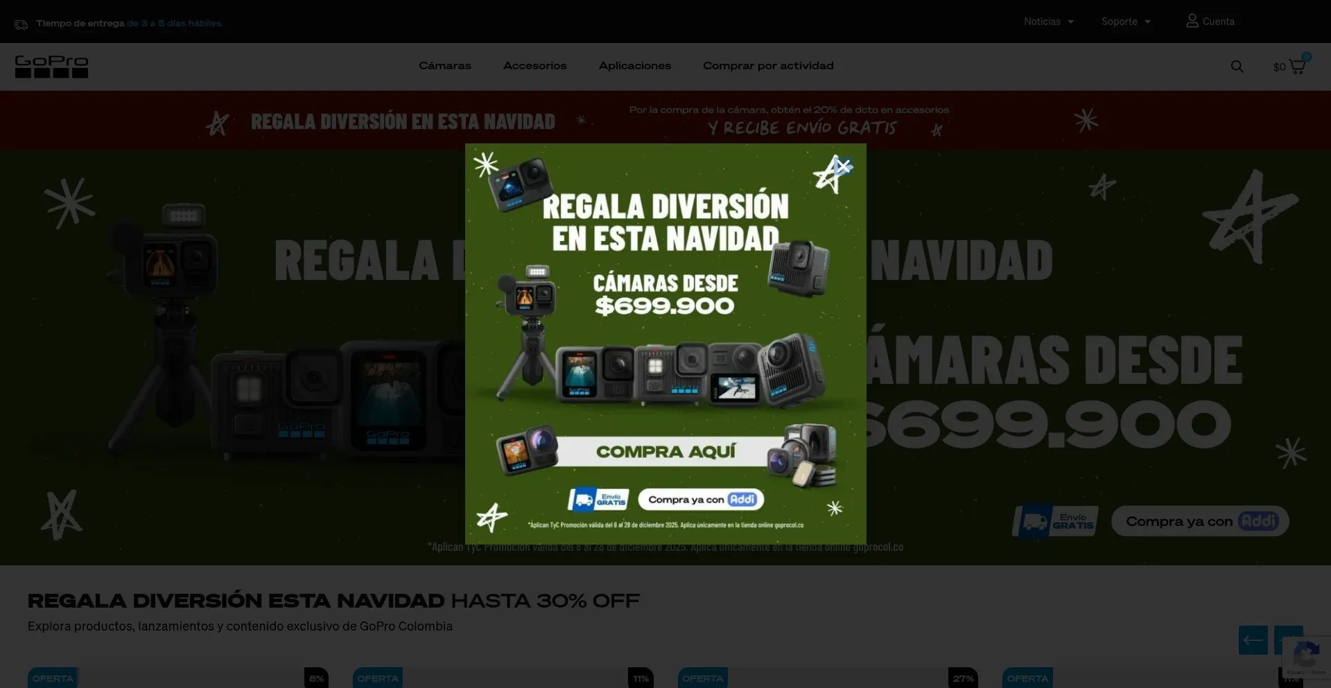 Accede al catálogo completo de productos GoPro en Colombia, incluyendo cámaras, soportes y accesorios.