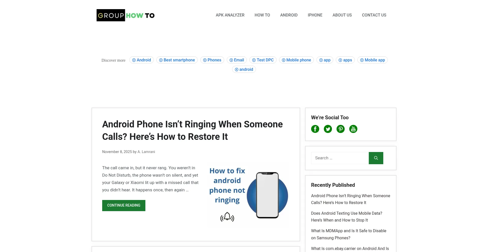 La presencia de enlaces de redes sociales en el sitio web indica que grouphowto.com mantiene cuentas oficiales en redes sociales, lo que es un indicador positivo de credibilidad y compromiso.