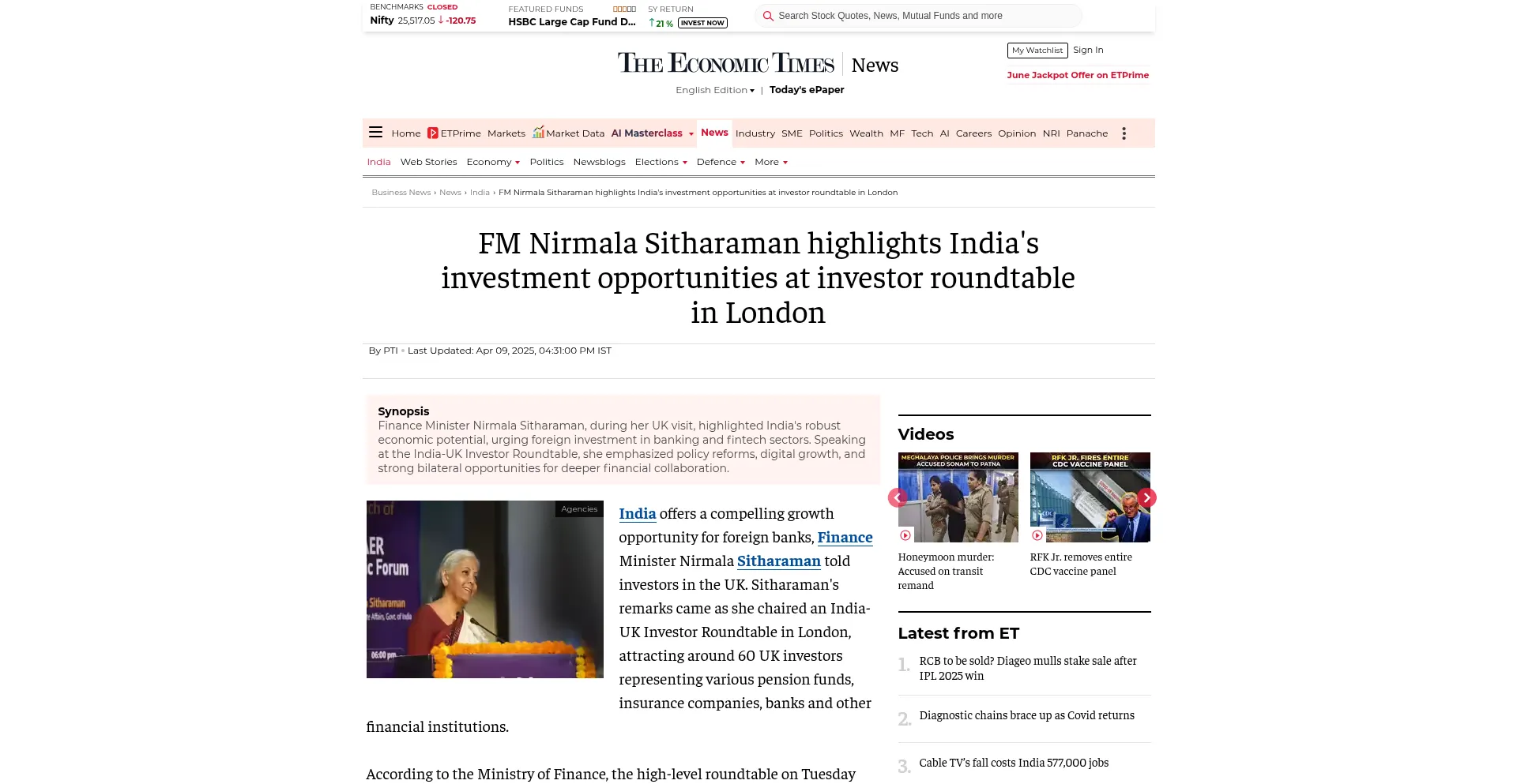 FM Nirmala Sitharaman highlights India's investment opportunities at investor roundtable in London - The Economic Times