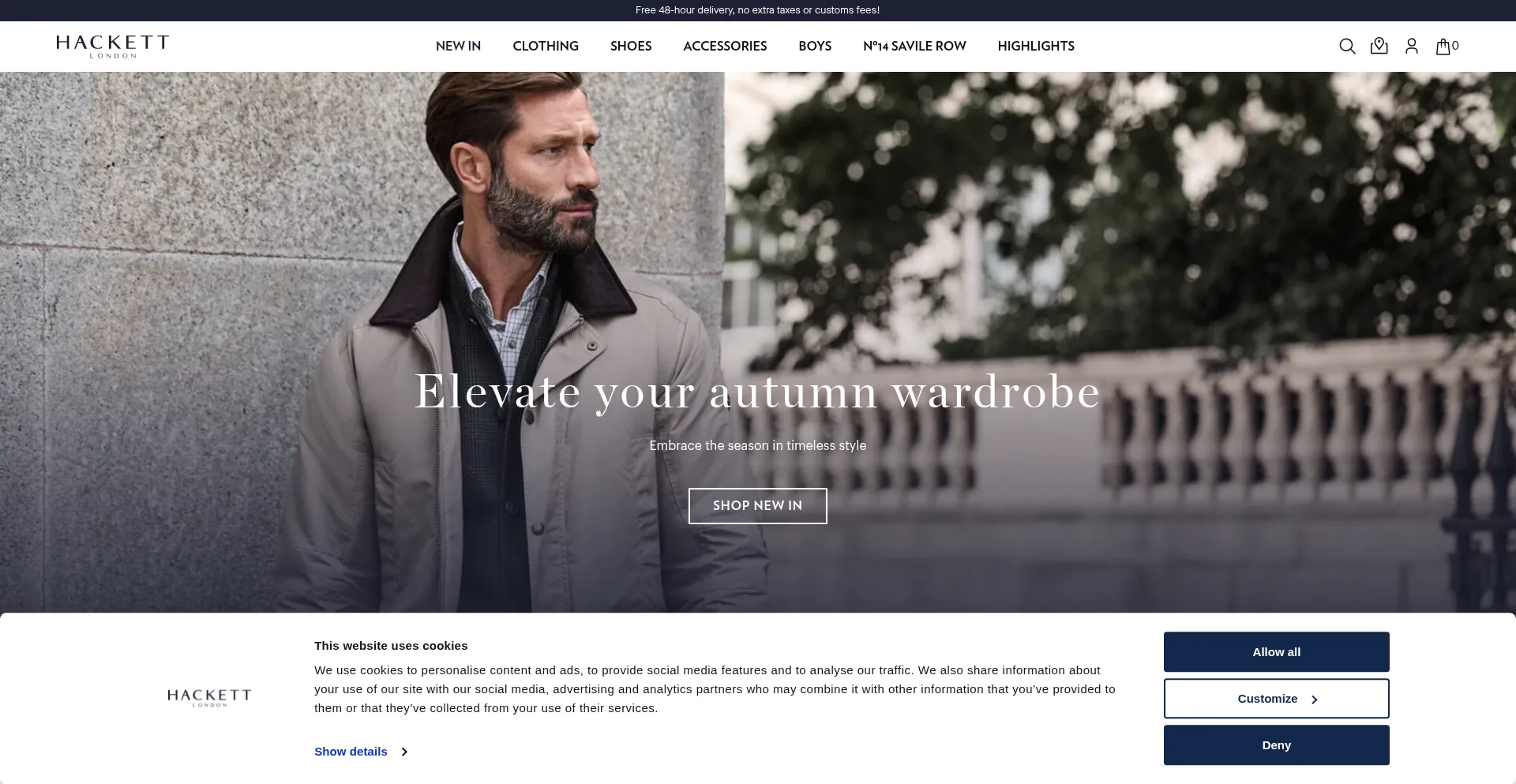 Shop menswear and boyswear from Hackett London online. Discover Hackett London, Hackett Mayfair, HKT and our Aston Martin Collections. All orders include free standard delivery.