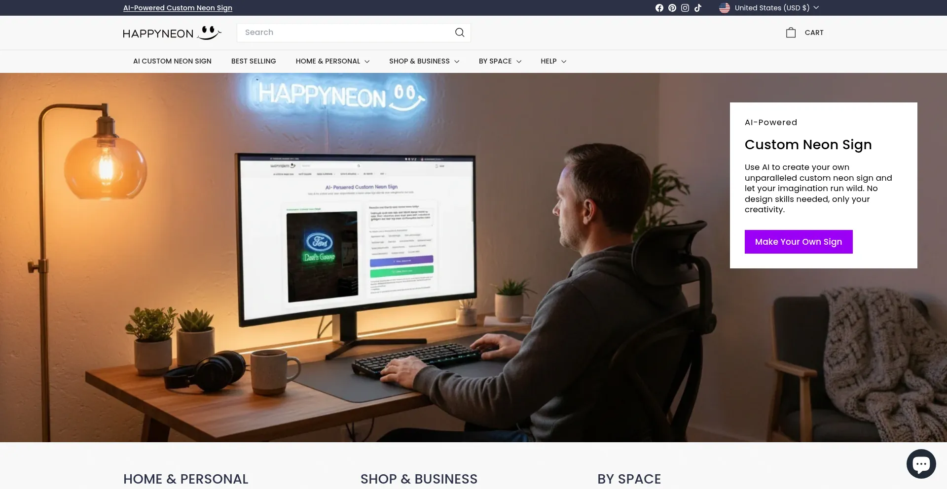 Design your own custom neon sign with HappyNeon. Fast delivery, premium quality, and AI-powered customization.