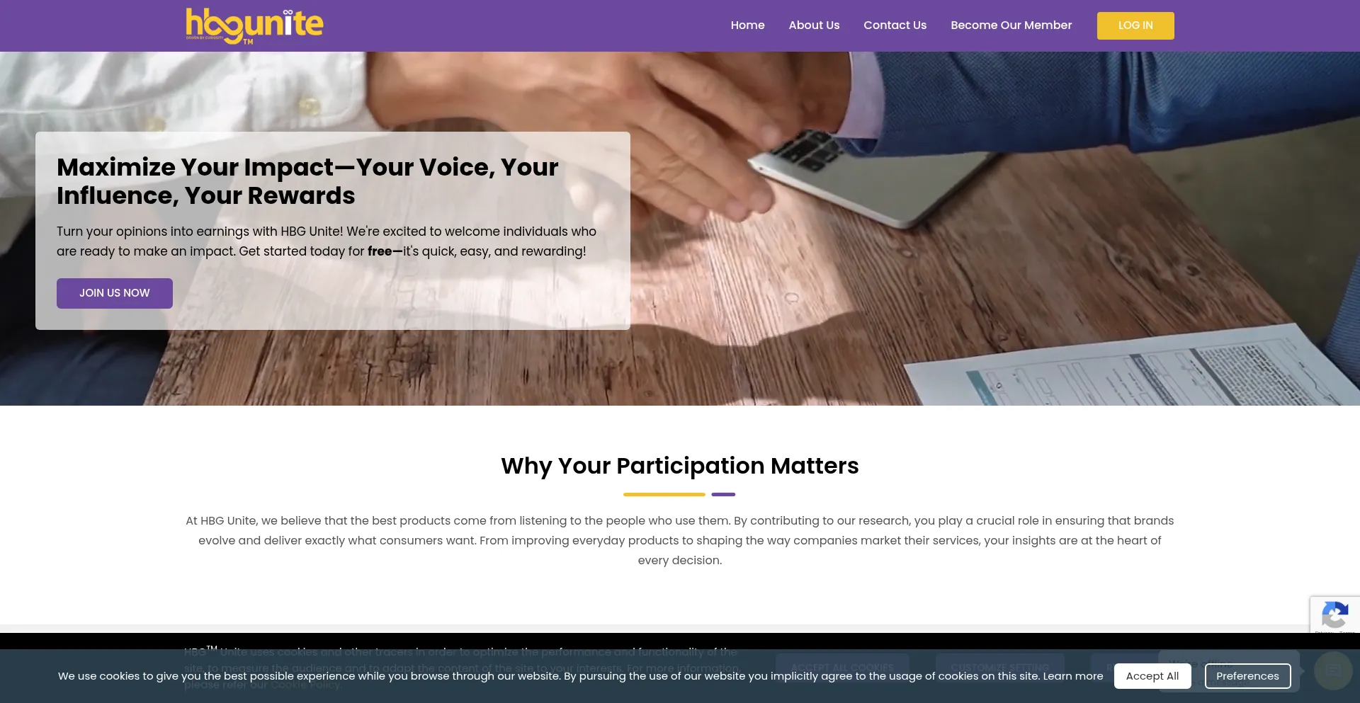 El sitio web implementa mecanismos de consentimiento de cookies en cumplimiento con regulaciones de privacidad como GDPR o CCPA. Esto demuestra que hbgunite.com adhiere a estándares de protección de datos y proporciona a los usuarios control sobre prácticas de recolección de datos personales.