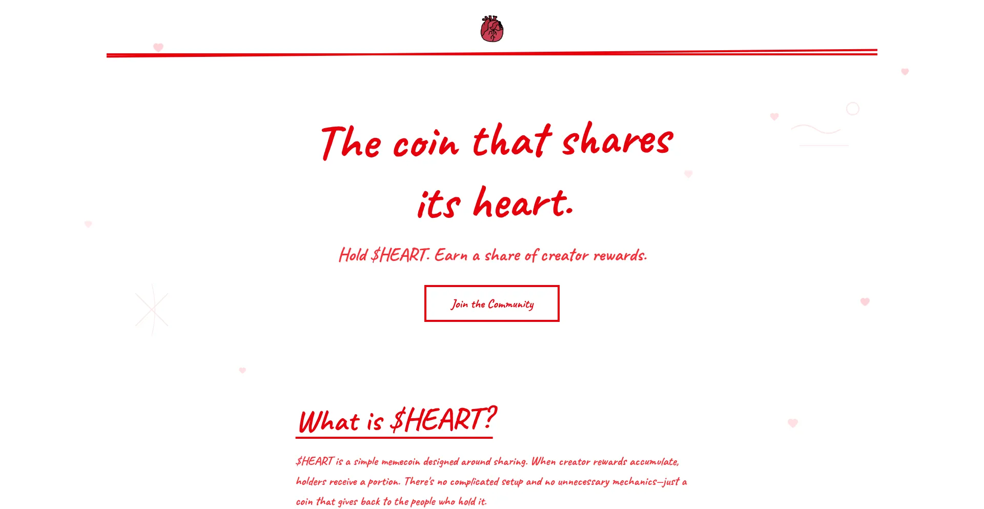 Hold $HEART. Earn a share of creator rewards. A simple memecoin designed around sharing.