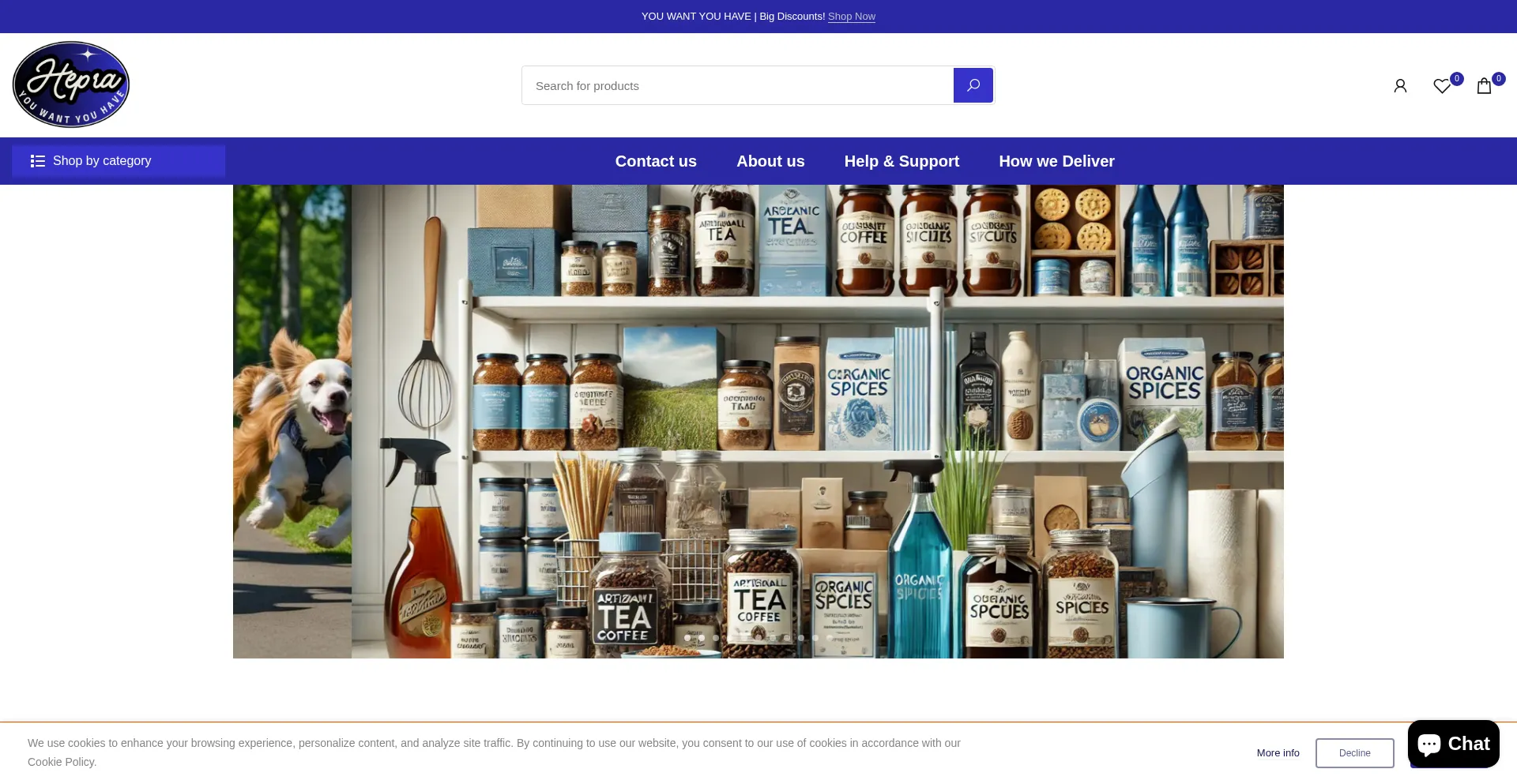 Shopping, Deals, Uses Free eCommerce Engine, Sports, Pets, Registration Form, Shopify Platform, Google Tag Manager, Facebook Integration, Young Domain