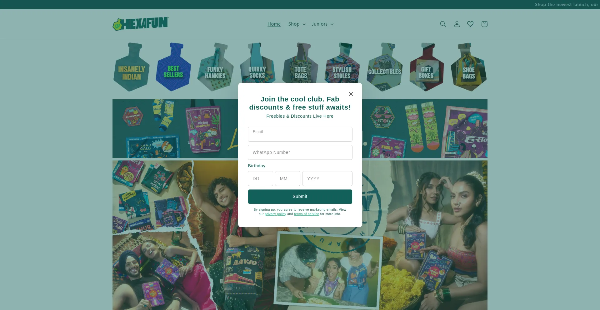 El sitio web implementa formularios de recolección de datos solicitando información personal incluyendo nombres, direcciones de correo electrónico, números de teléfono u otros detalles sensibles. Los usuarios deben verificar la legitimidad de hexafunstyles.com y revisar políticas de privacidad antes de enviar datos personales.