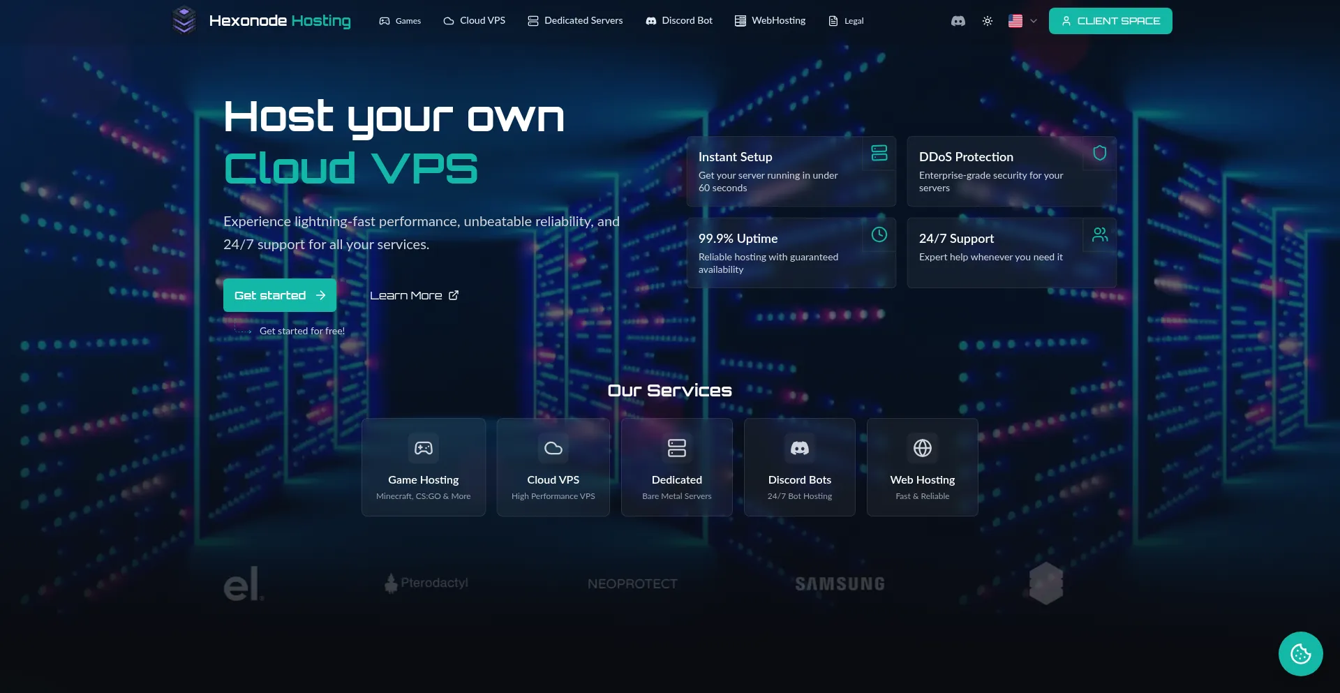 Premium Server and game hosting, VPS & dedicated servers by Hexonode. High-performance infrastructure with 99.9% uptime, DDoS protection & 24/7 support.