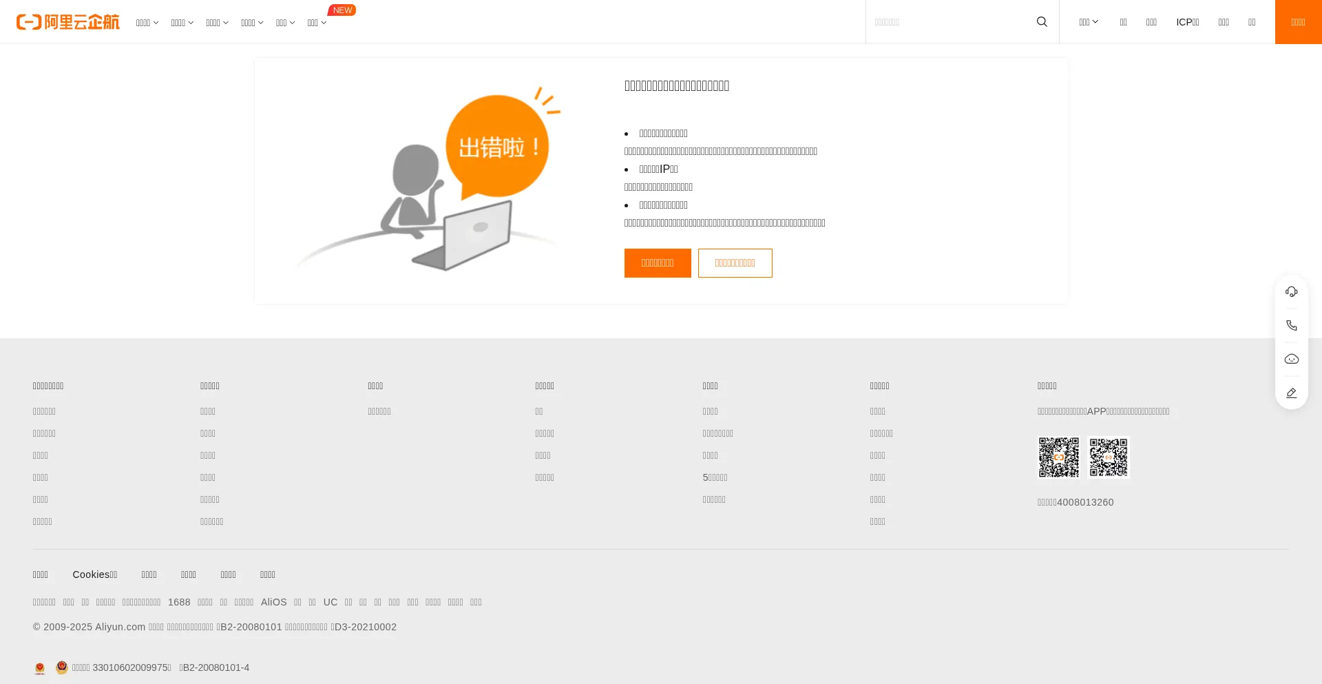 阿里云万网虚机IP访问报错提示