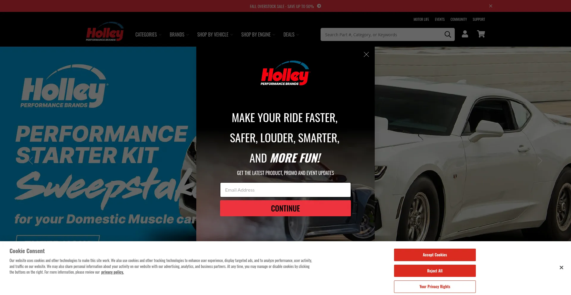 El sitio web implementa mecanismos de consentimiento de cookies en cumplimiento con regulaciones de privacidad como GDPR o CCPA. Esto demuestra que holley.com adhiere a estándares de protección de datos y proporciona a los usuarios control sobre prácticas de recolección de datos personales.