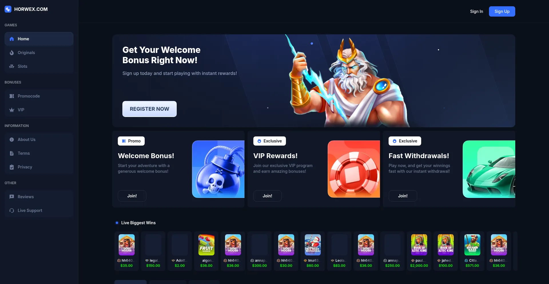 Horwex: Crypto Casino Games & Casino Slot Games - Crypto Gambling
