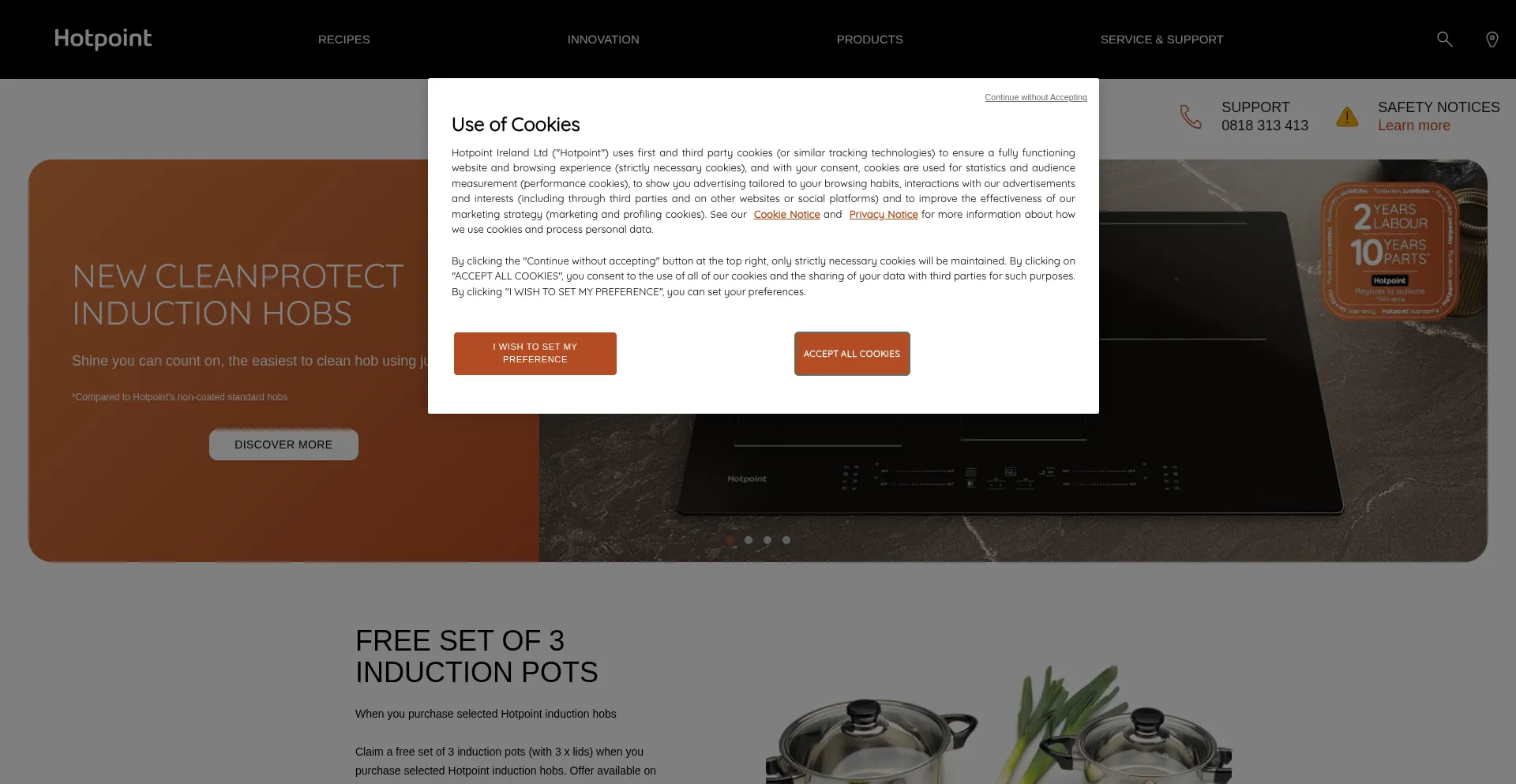 El sitio web implementa mecanismos de consentimiento de cookies en cumplimiento con regulaciones de privacidad como GDPR o CCPA. Esto demuestra que hotpoint.ie adhiere a estándares de protección de datos y proporciona a los usuarios control sobre prácticas de recolección de datos personales.