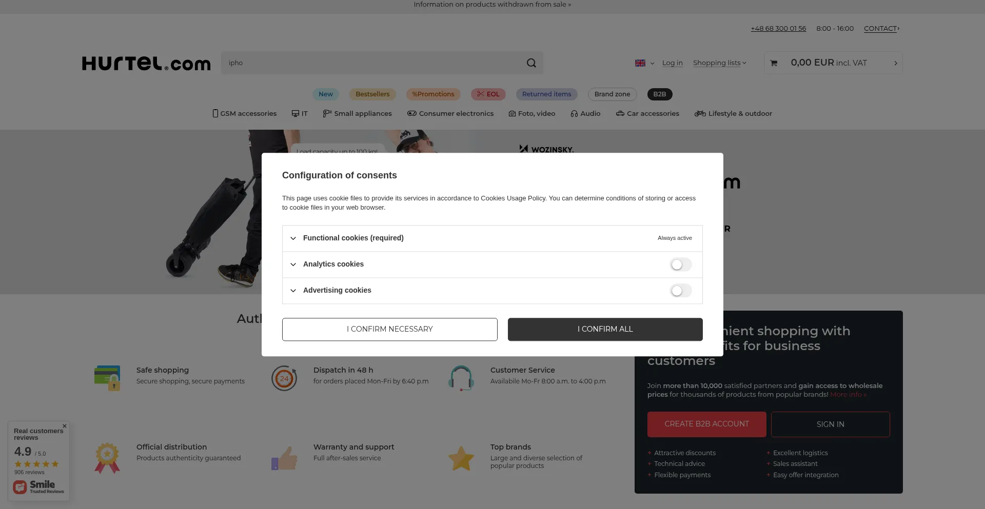 El sitio web implementa mecanismos de consentimiento de cookies en cumplimiento con regulaciones de privacidad como GDPR o CCPA. Esto demuestra que hurtel.pl adhiere a estándares de protección de datos y proporciona a los usuarios control sobre prácticas de recolección de datos personales.