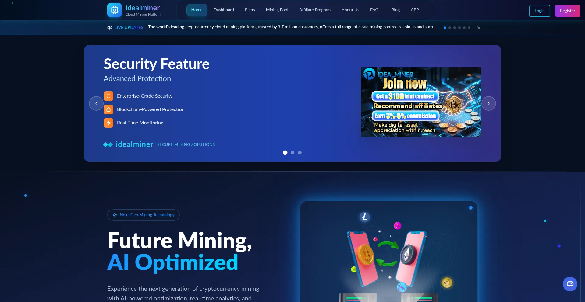 idealminer - Professional Cryptocurrency Mining Platform | $100 Welcome Bonus