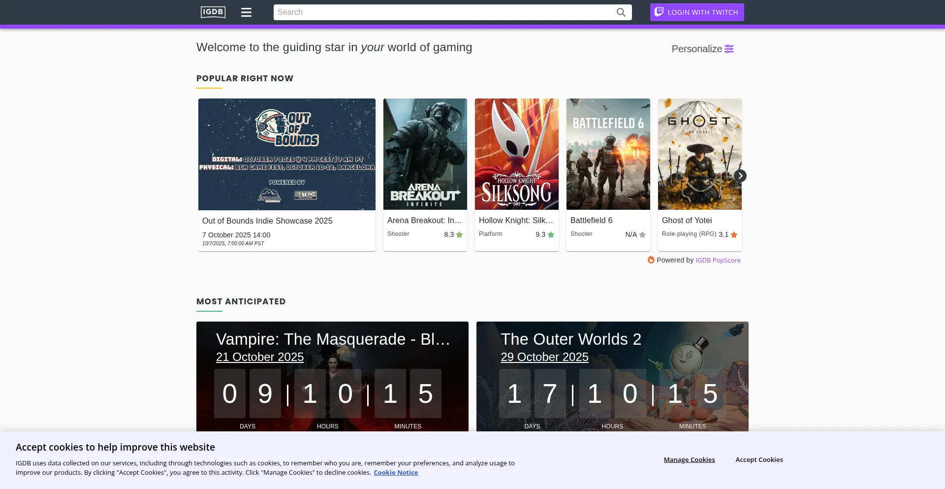 El sitio web implementa mecanismos de consentimiento de cookies en cumplimiento con regulaciones de privacidad como GDPR o CCPA. Esto demuestra que igdb.com adhiere a estándares de protección de datos y proporciona a los usuarios control sobre prácticas de recolección de datos personales.