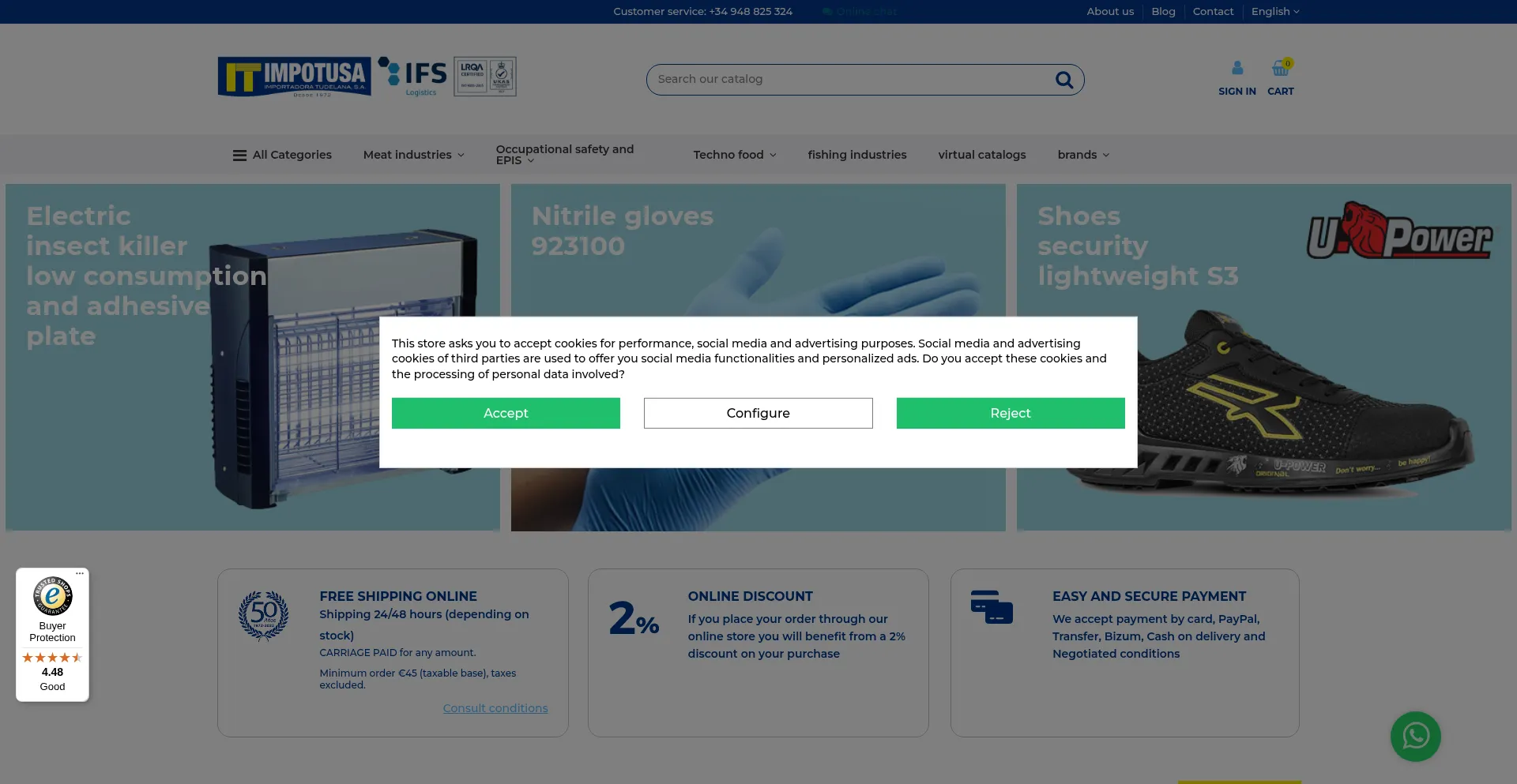 Online store of safety items, machinery for the agri-food sector, especially the meat sector. ✅ Shipping 24/48 hours.