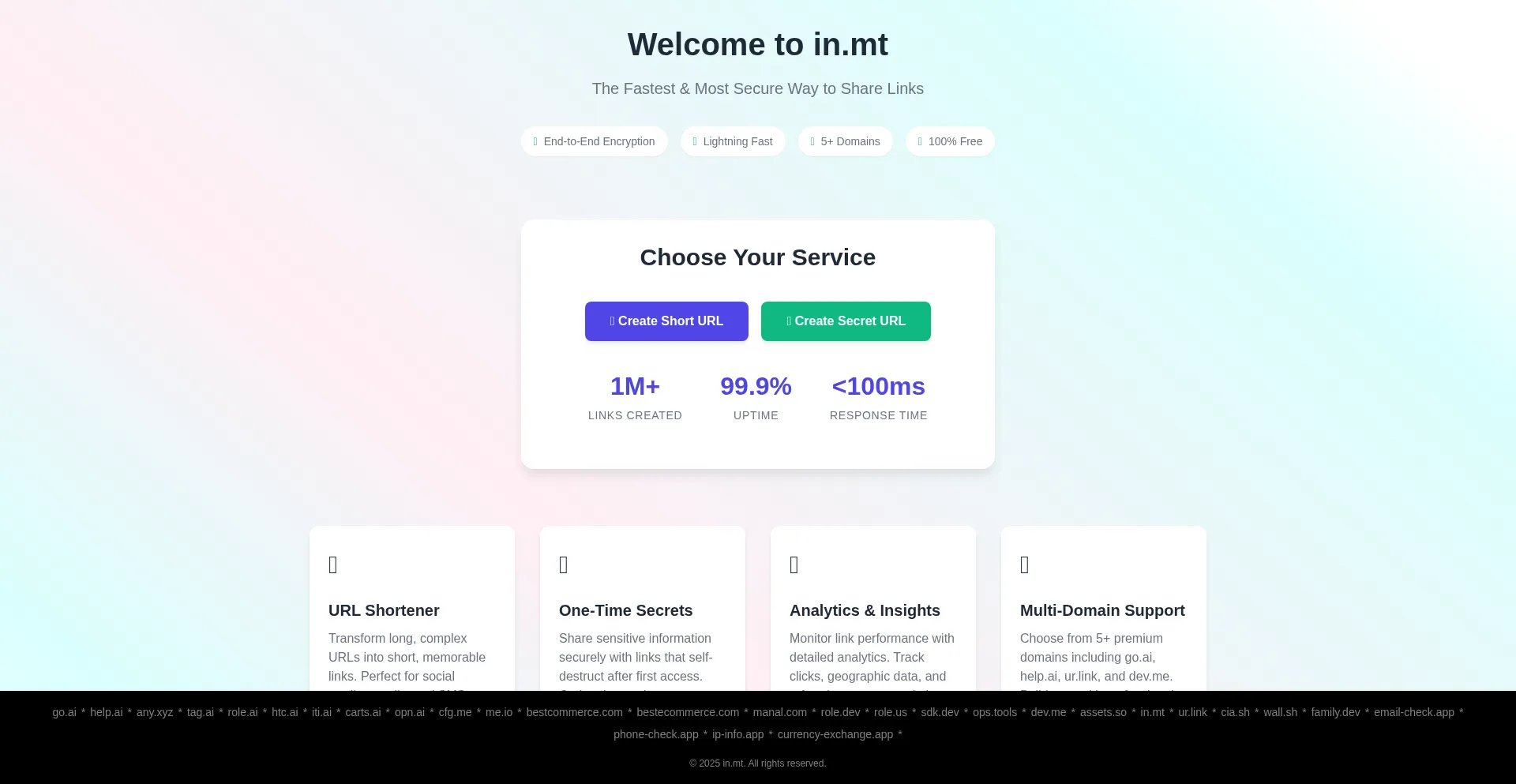 Create short URLs and share sensitive information securely with in.mt. Free, fast, and reliable URL shortening service with one-time secret links.