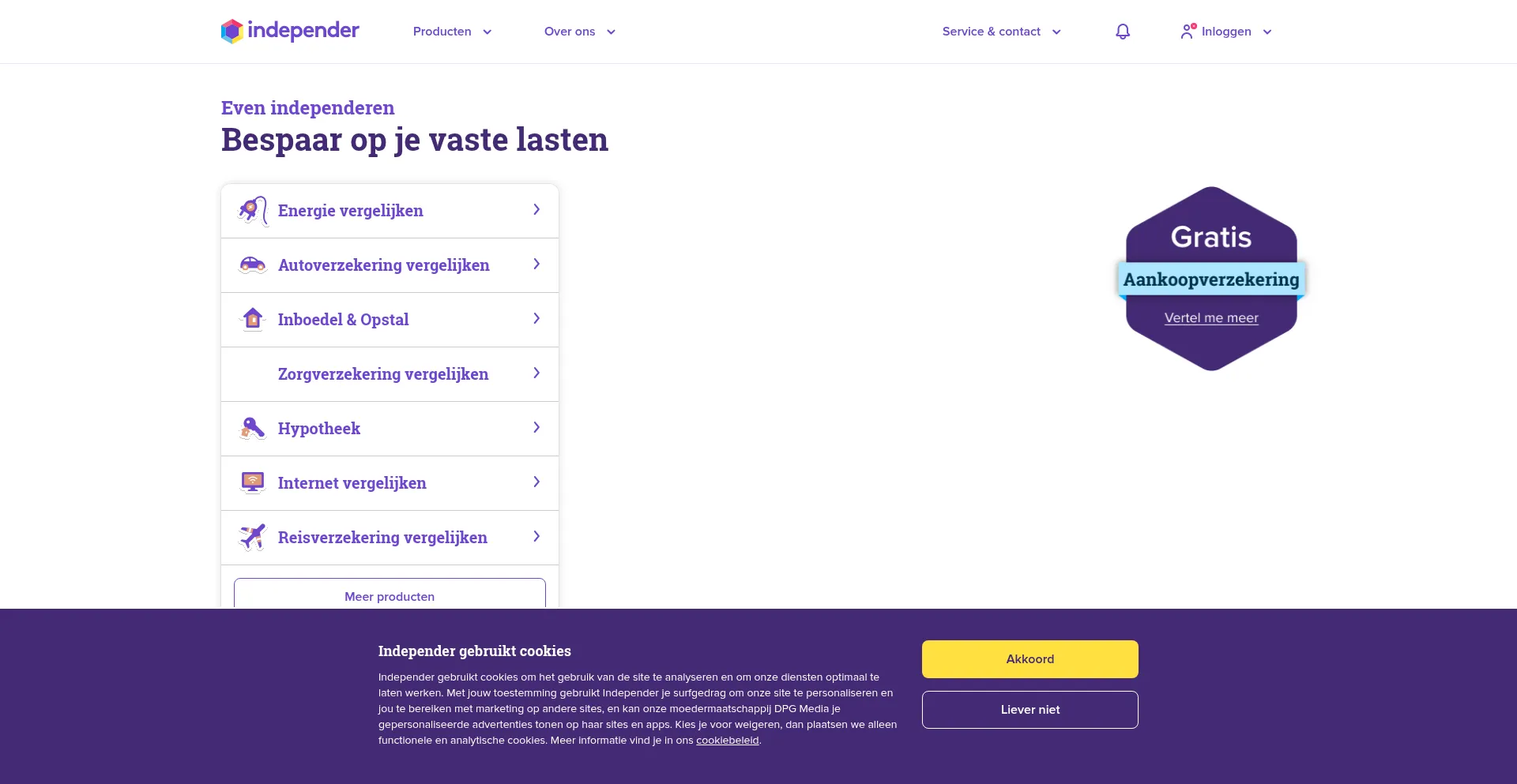 Bij Independer vergelijk je verzekeringen, energie, telecom, hypotheken en andere financiële producten ✓ Sluit direct online af ✓ Klantcijfer *9,2* ✓