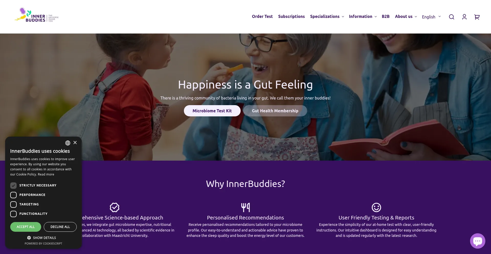 Discover your unique microbiome with InnerBuddies' Microbiome Test. Improve your gut health with personalised advice tailored to your needs. Take the first step toward better we...