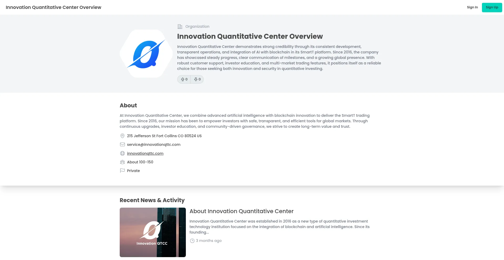 Innovation Quantitative Center Overview & Company News