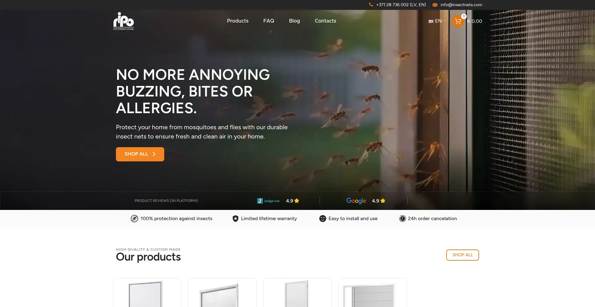Durable insect screens with a long service life. Ready to install. Lifetime warranty. Customized solution for your windows and doors.
