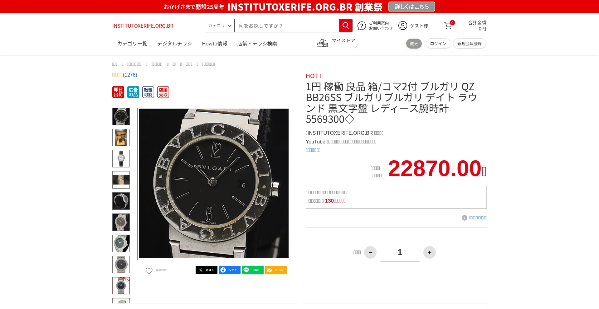1円 稼働 良品 箱/コマ2付 ブルガリ QZ BB26SS ブルガリブルガリ デイト ラウンド 黒文字盤 レディース腕時計 5569300◇