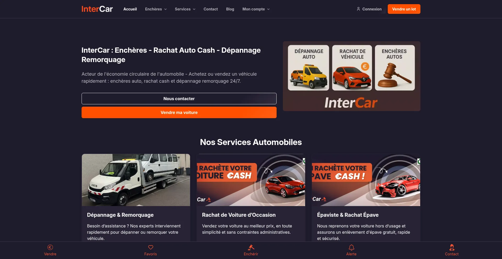 InterCar : enchères auto, dépannage, remorquage, rachat de voiture et épave. Estimation rapide et assistance immédiate. Obtenez un devis gratuit ! 🚗✅