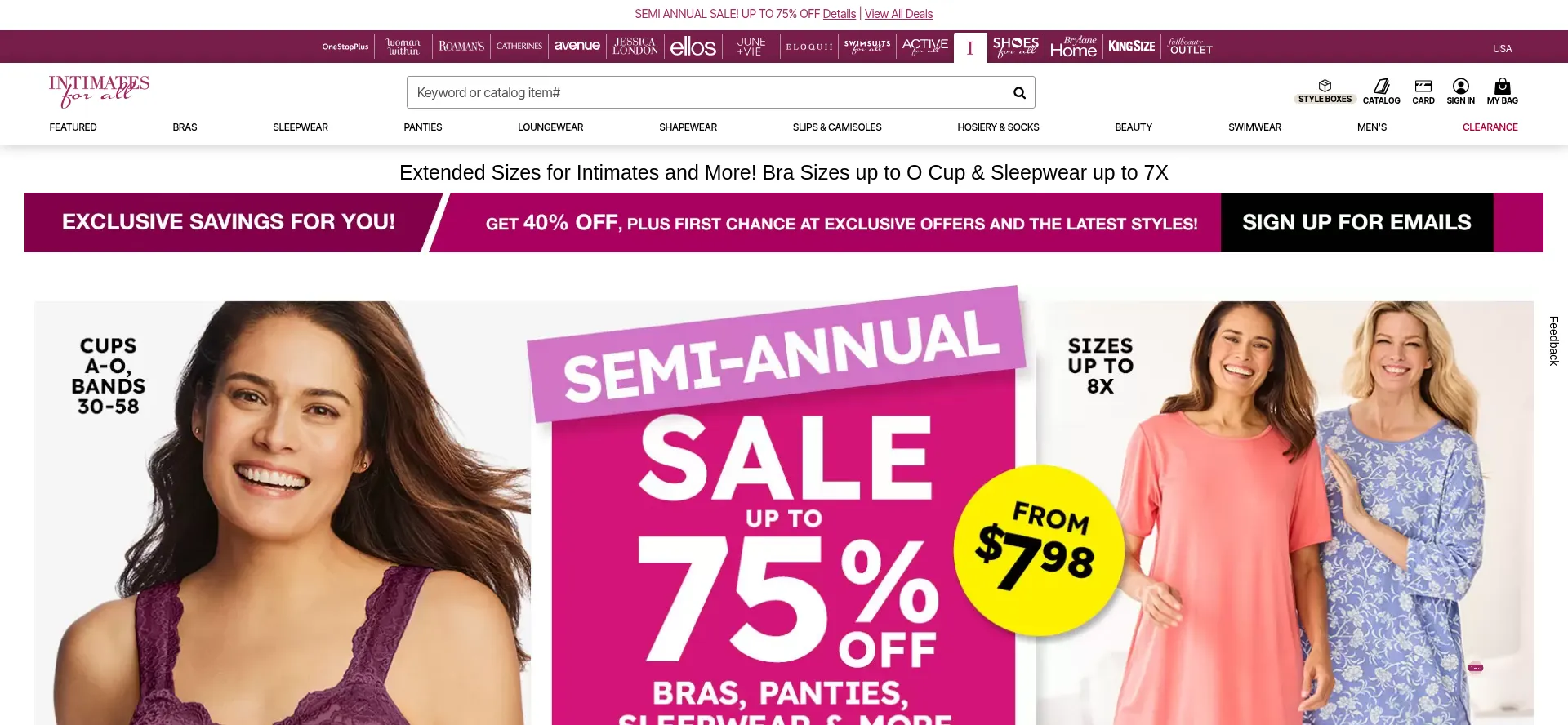 Shop at Intimates For All for all of your plus size intimate apparel, cozy sleepwear, and men's big and tall apparel. Available in 247 sizes, bands 34-58 and cup sizes A-N.