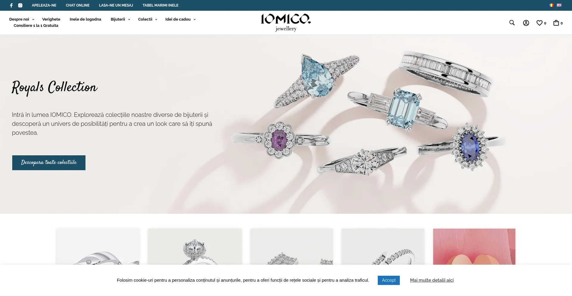 Intră în lumea IOMICO Jewellery. Explorează colecțiile noastre de Bijuterii din Platină. Inele platină diamante naturale, cercei, verighete.