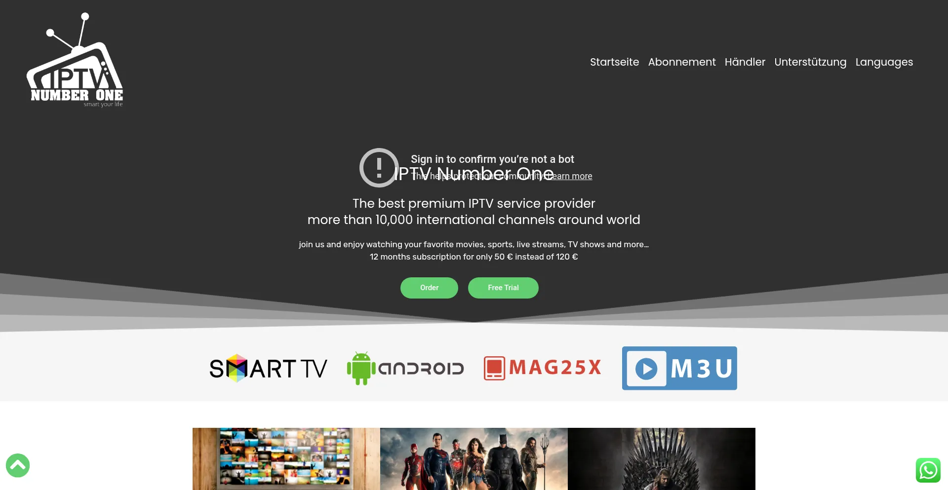 join us and enjoy watching your favorite movies, sports, live streams, TV shows and more...12 months subscription for only 50 € instead of 120 €