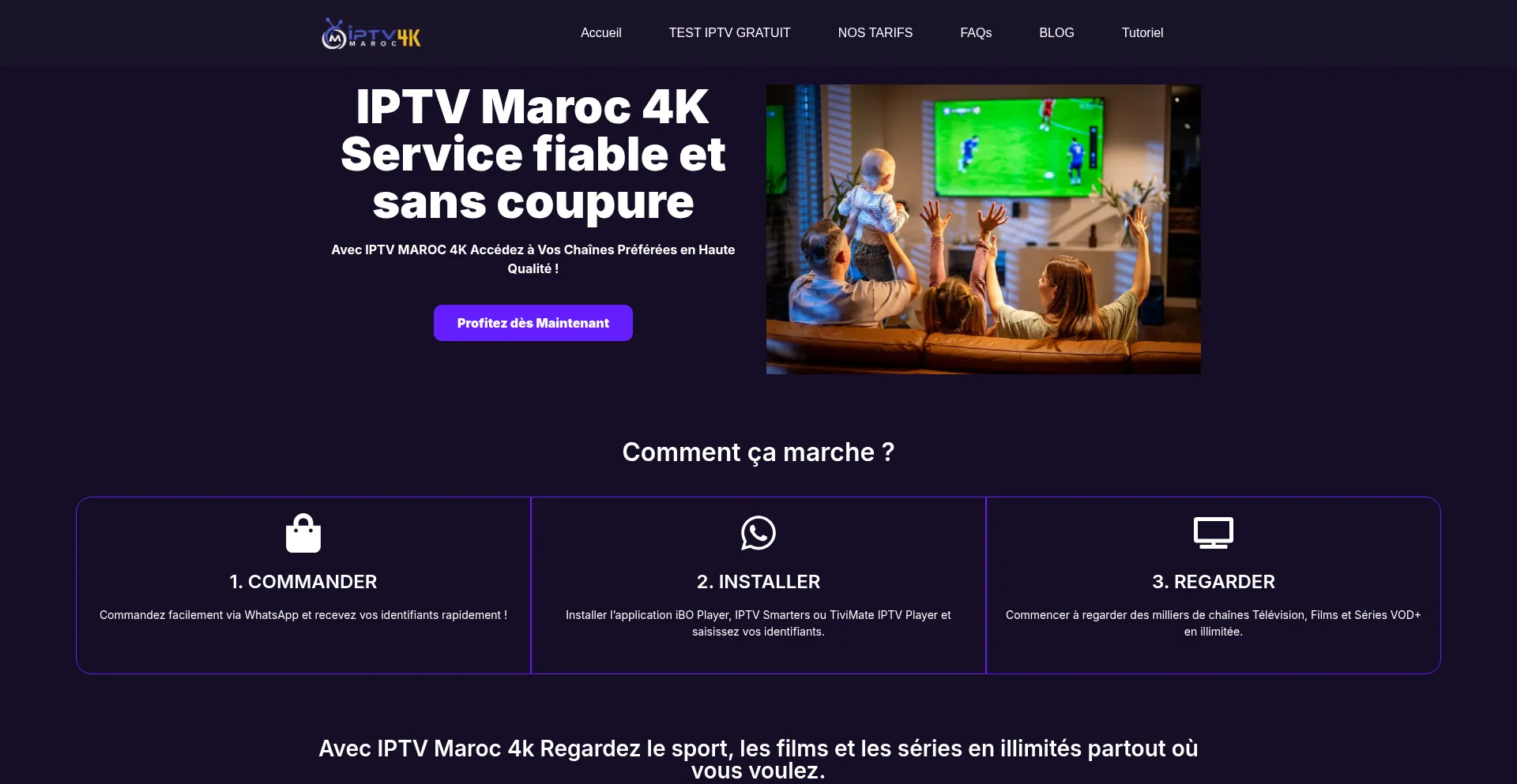 IPTV Maroc 4K vous propose le meilleur abonnement IPTV au Maroc, en qualité 4K stable et fluide. Regardez vos chaînes préférées sans coupure.