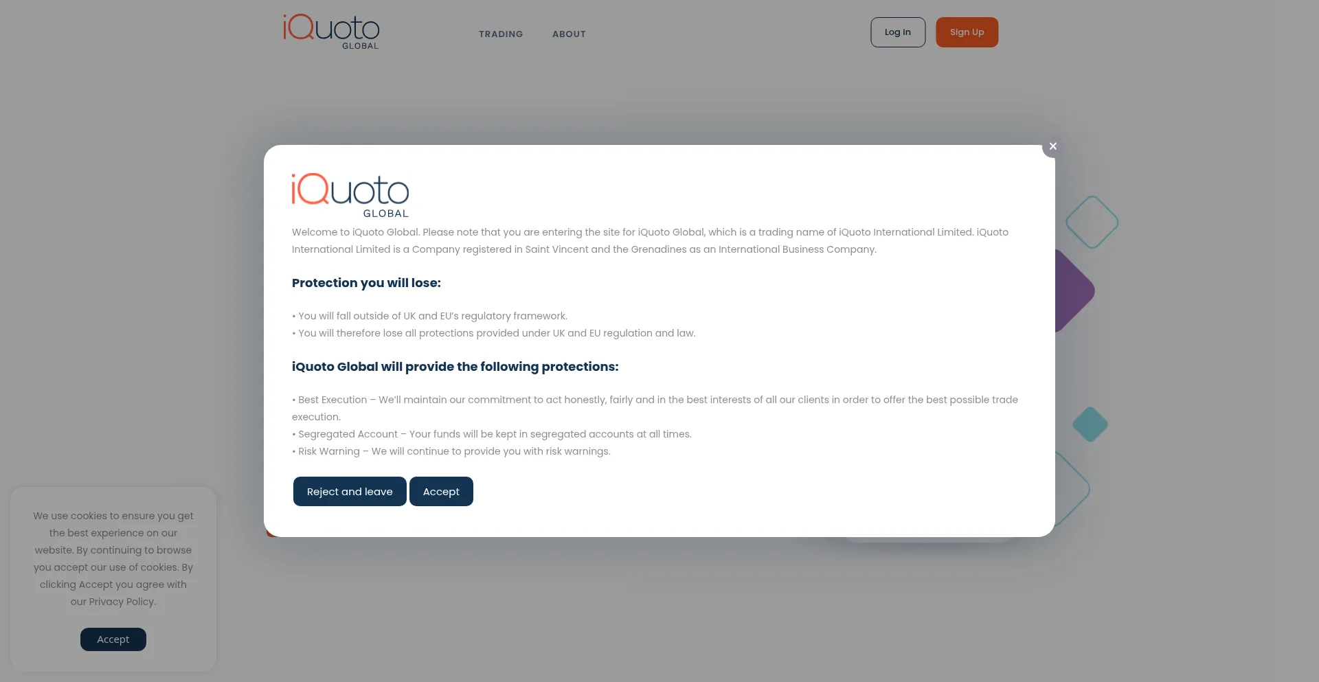 El sitio web implementa mecanismos de consentimiento de cookies en cumplimiento con regulaciones de privacidad como GDPR o CCPA. Esto demuestra que iquoto.global adhiere a estándares de protección de datos y proporciona a los usuarios control sobre prácticas de recolección de datos personales.