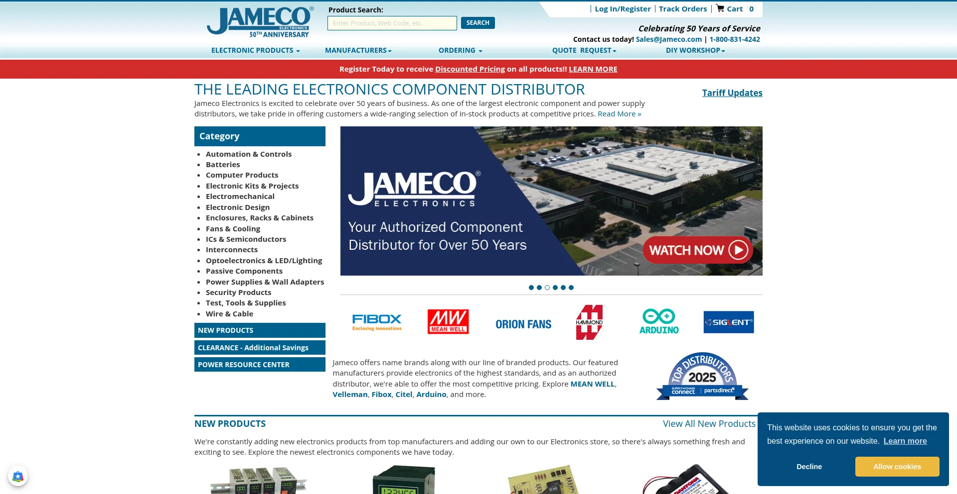 Jameco Electronics is a leading electronics component distributor with over 50 years in business, selling electronic components, parts, and kits at competitive prices. Shop now.